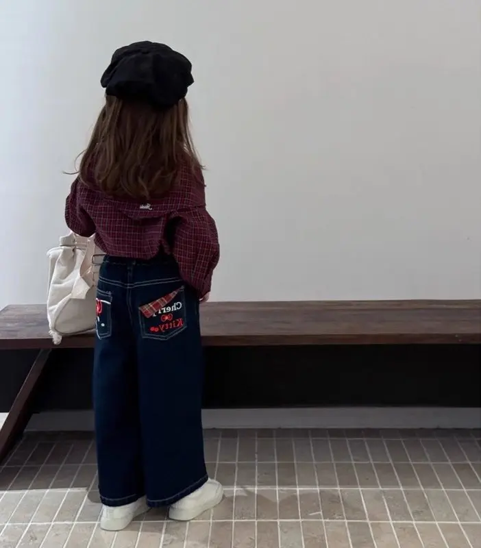 Girl’s Fashionable Long Sleeved T-shirt Shawl Plaid Casual Outdoor Top 2025 Spring and Autumn New Style 3-8Y