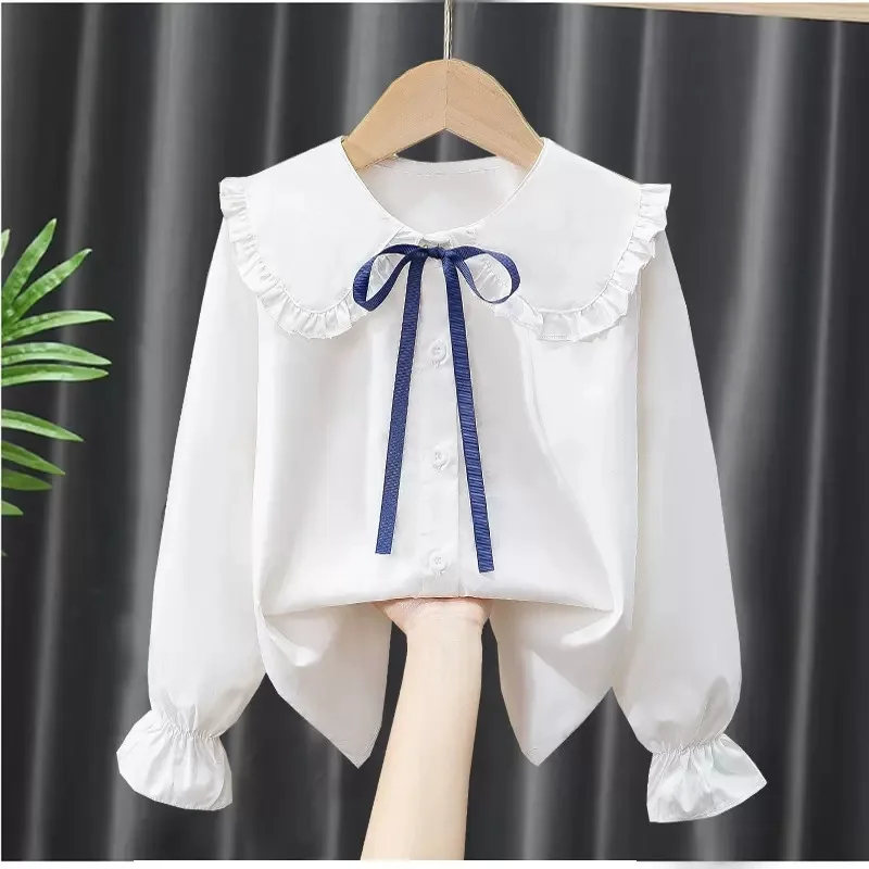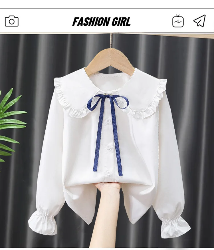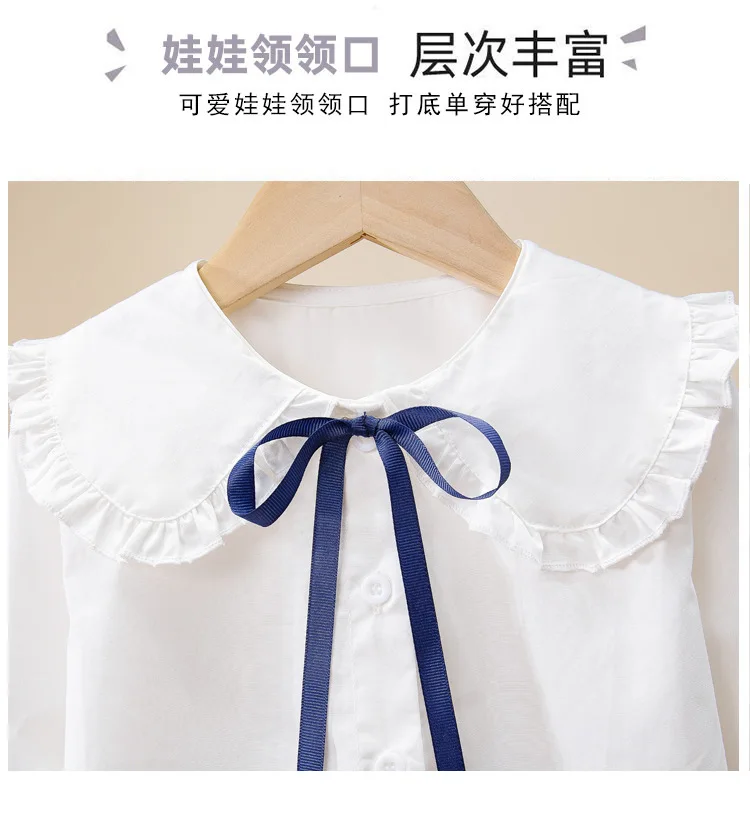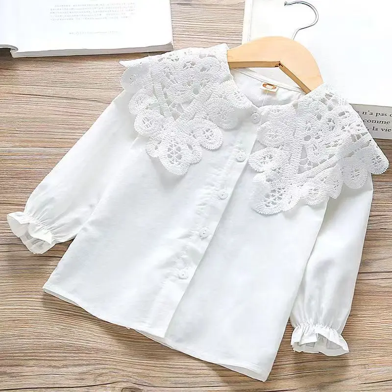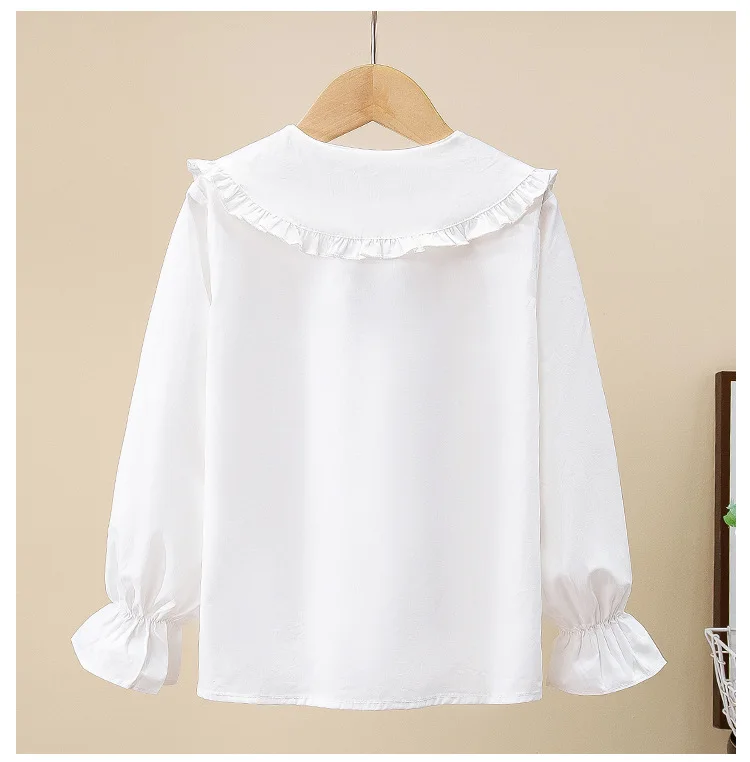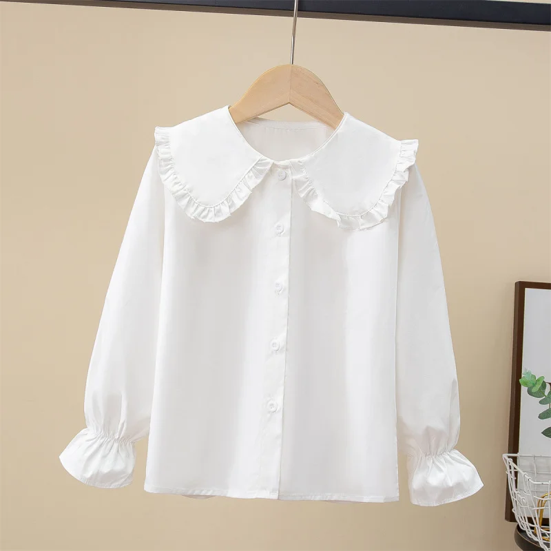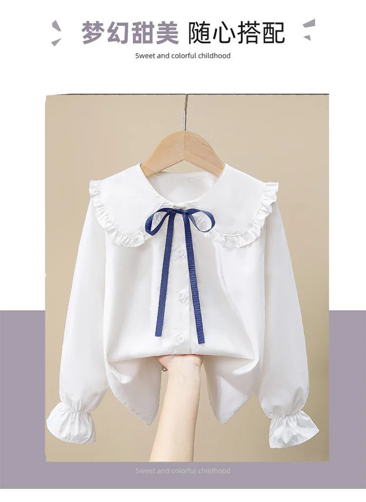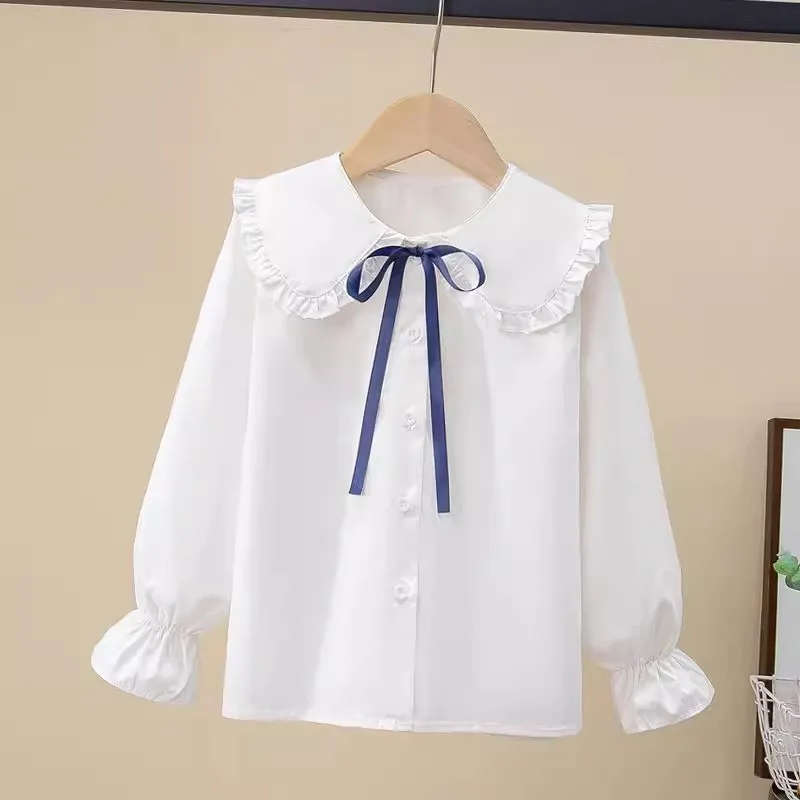 Girls’ Spring Autumn Blouse New Korean Style Fashionable Long Sleeve White Shirt Children’s Lace Peter Pan Collar Bottoming Shir