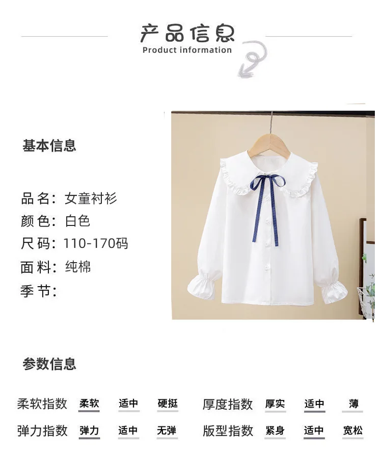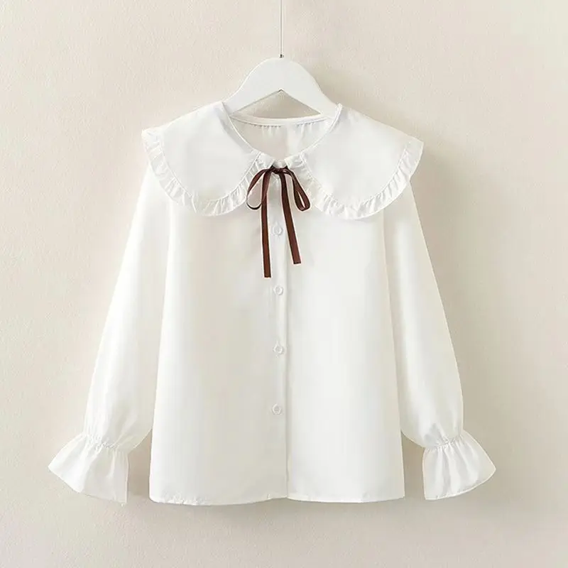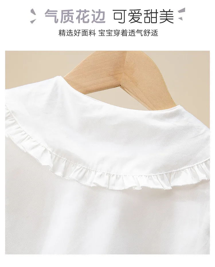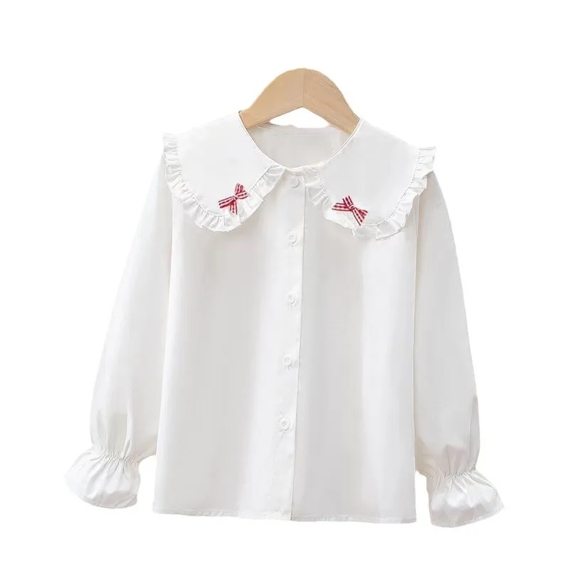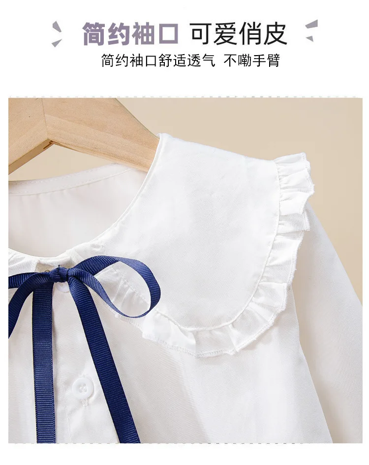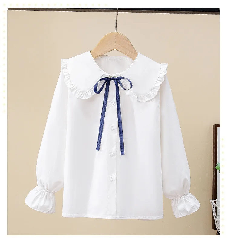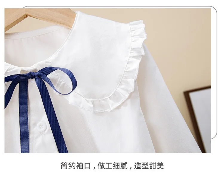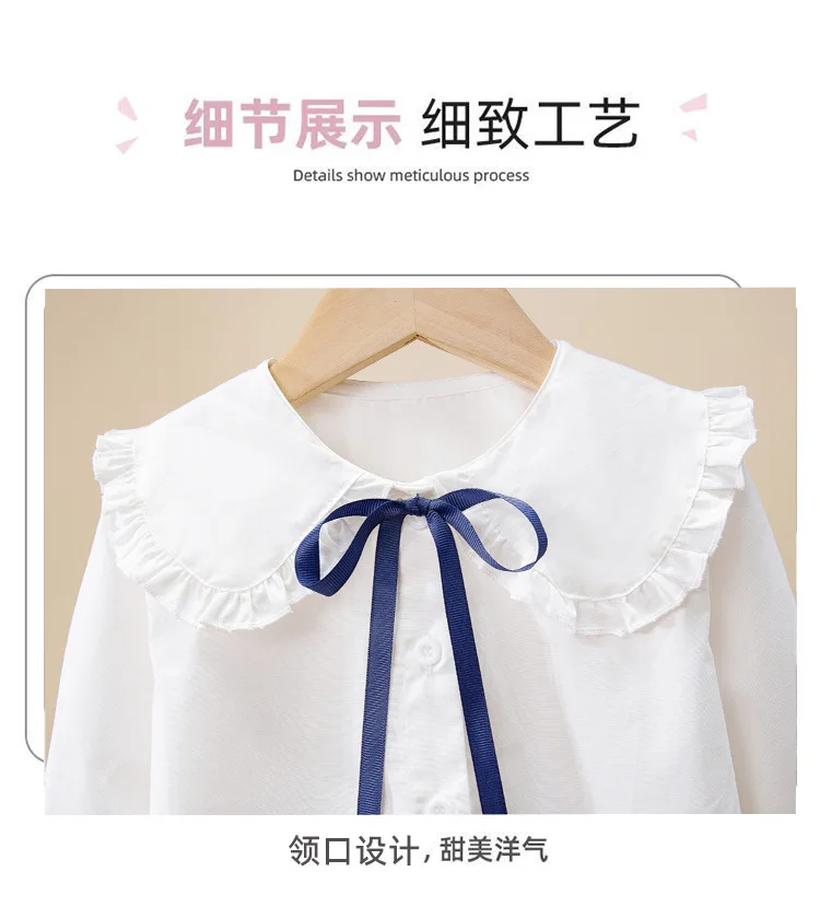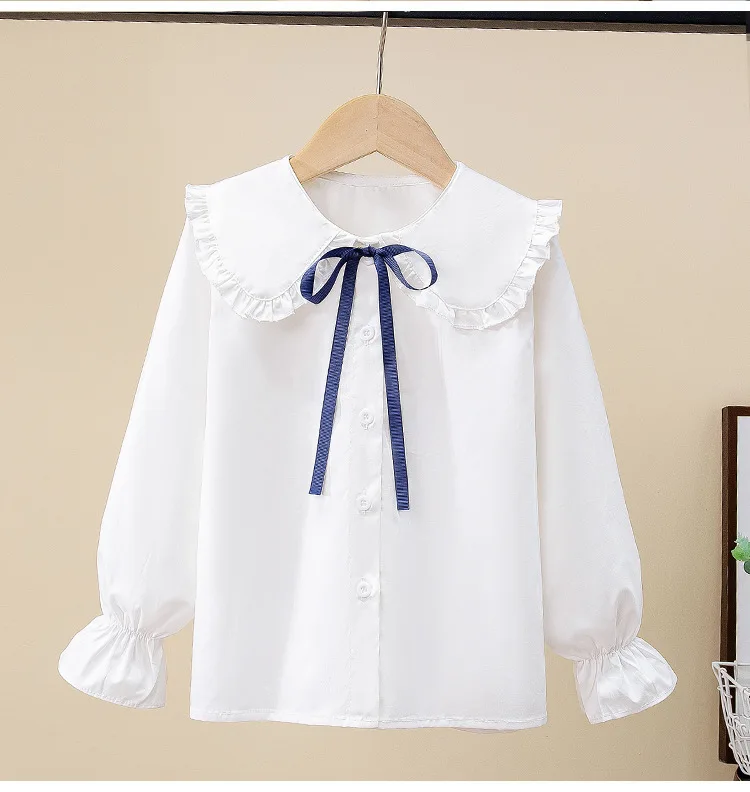 Girls’ Spring Autumn Blouse New Korean Style Fashionable Long Sleeve White Shirt Children’s Lace Peter Pan Collar Bottoming Shir
