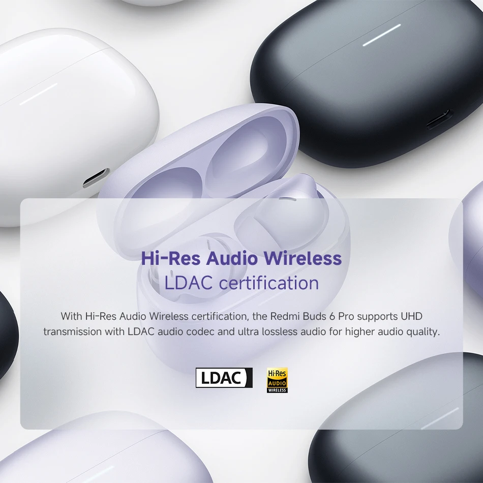 Global Version Xiaomi Redmi Buds 6 Pro Earbuds 55dB Active Noise Cancellation Bluetooth 5.3 TWS Earphone 480mAh Battery Headset