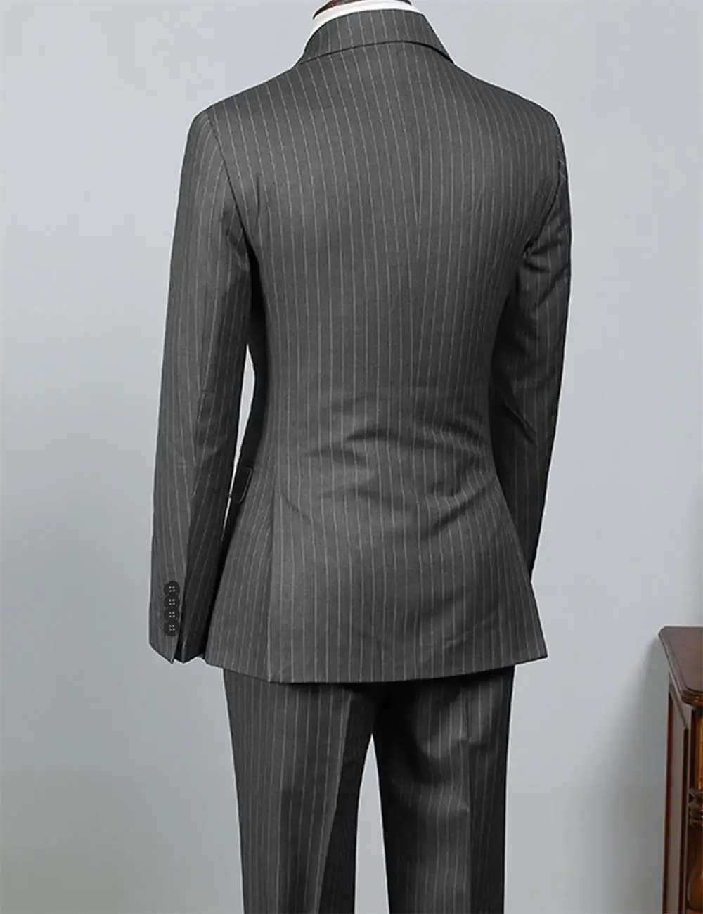 Gray Striped Men’s Suit 2 Piece Set Man double-breasted Slim Fit Business Formal suit Casual Suit Jacket Pant Groom’s suit dress