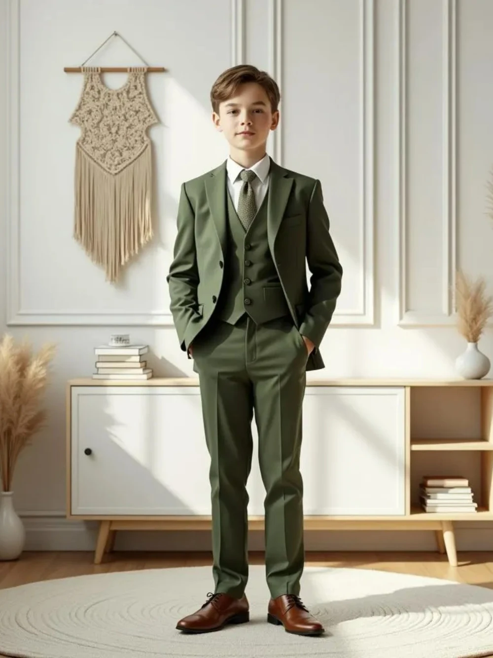 Green Smart Kids Suit Set Jacket Vest Pants 3 Pieces School Activities Wear Spring Notched Lapel Boys Suits Performance Tuxedo