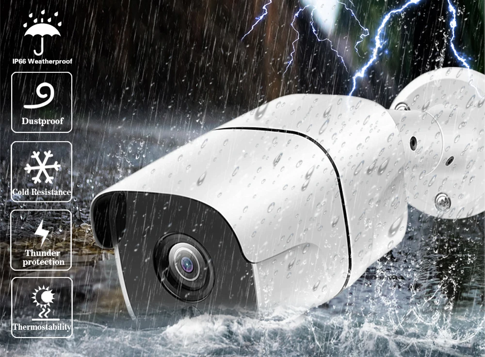Use them as outdoor cameras or indoor cameras, as they are built tough to withstand whatever the weather throws as then:rain,snow,dust and hot days .with IP66 weatherproof rating ,and cables threaded through the stand for extra protection ,ensure you can reply on their performance,day in ,day out. Our camera adopts heavy-duty metal housing,professional IP66 weatherproof,Providing stable performance both indoor and outdoor.