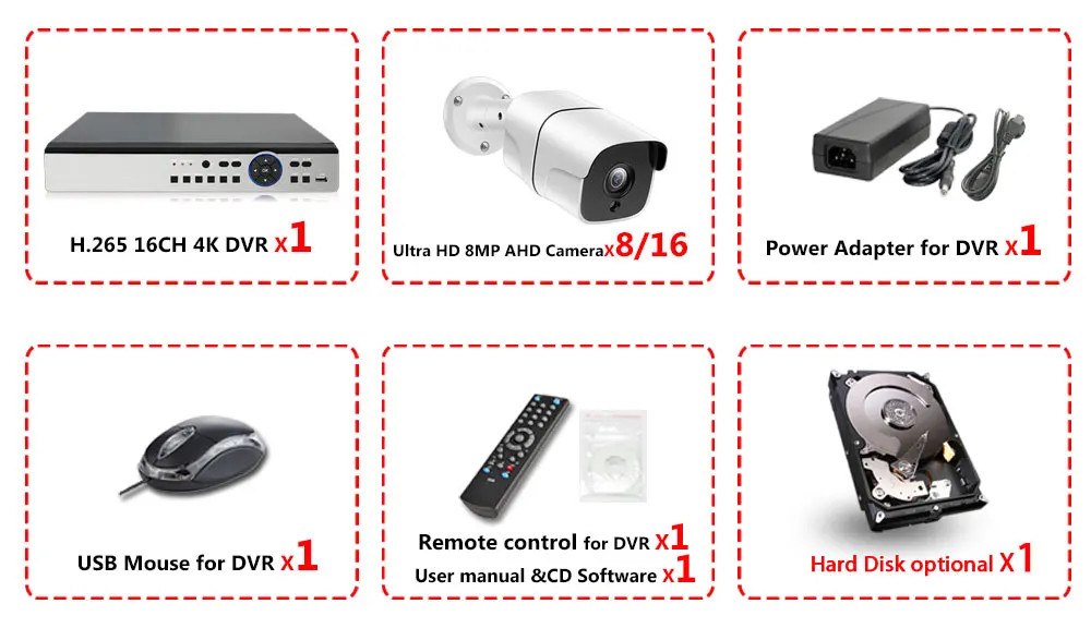 • AHD DVR Resolution: H.265 16CH 4K DVR