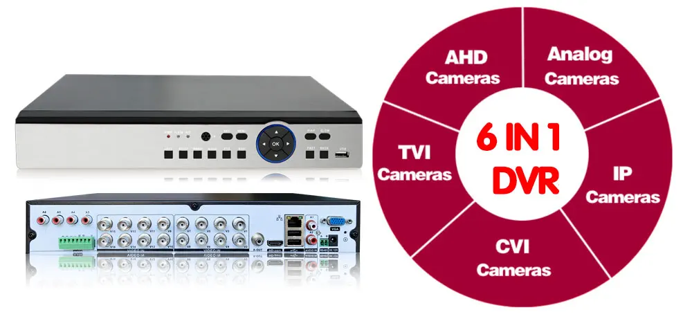 You can freely enjoy six connection modes with this one multi-function digital video recorder.AHD(Analog High Definition)is new advanced technology on home security with 6 recordering modes.for your option:AHD /CVBS / TVI / CVI /XVI / IP. You can get HD quality video in each mode.