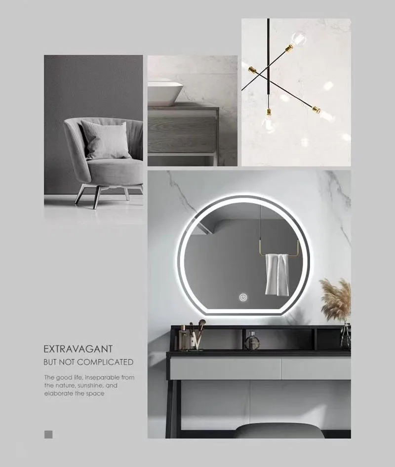 Half Circle Intelligent Dressing Table Bathroom Mmirror Wall Mounted Cloakroom LED Illuminated Makeup Mirrors Home Decoration