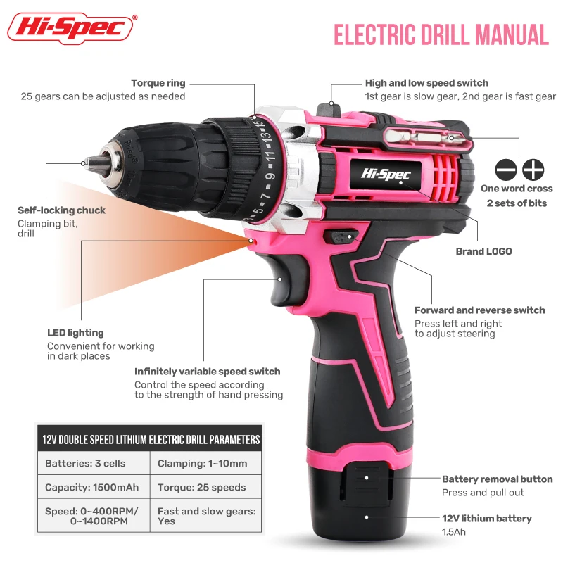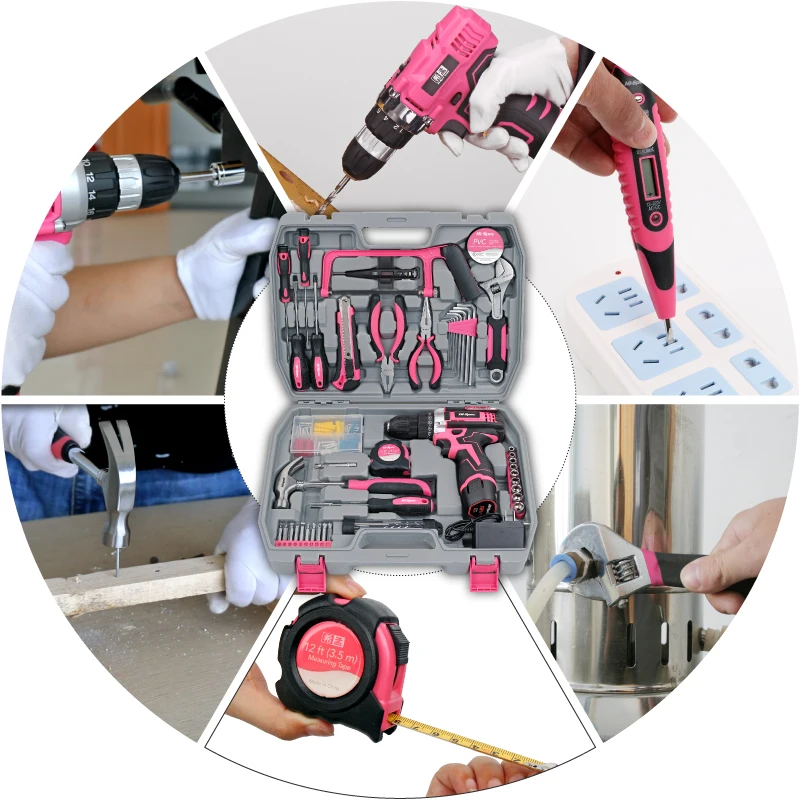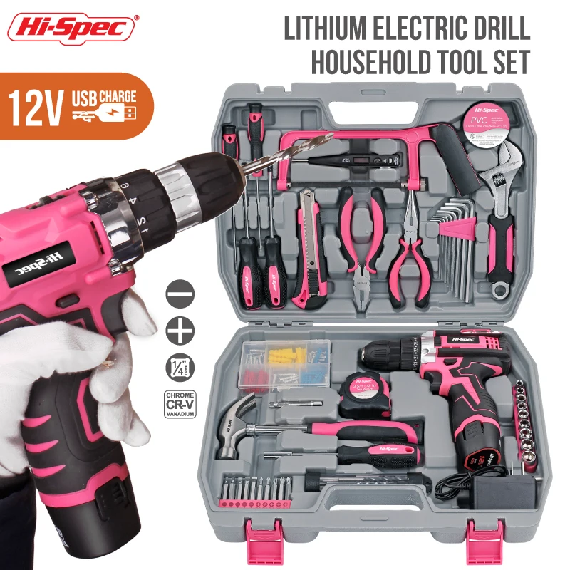 Be the first to review “Hi-Spec Pink Electric Screwdriver Drills Kit Home Tool Kits Set Repair Electric Cordless Drills Complete Tool Box Kit Hammer”
