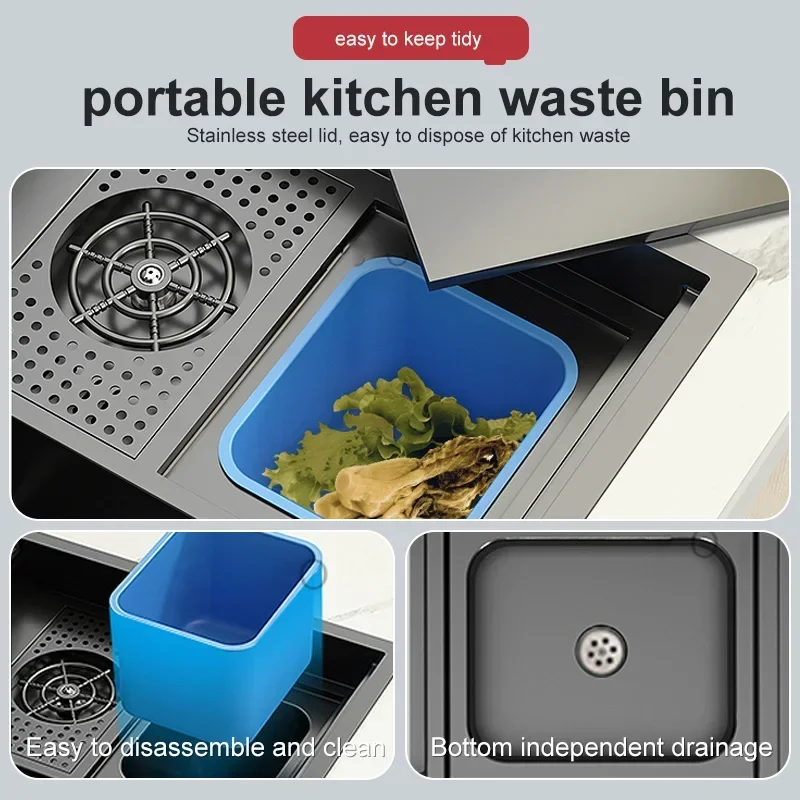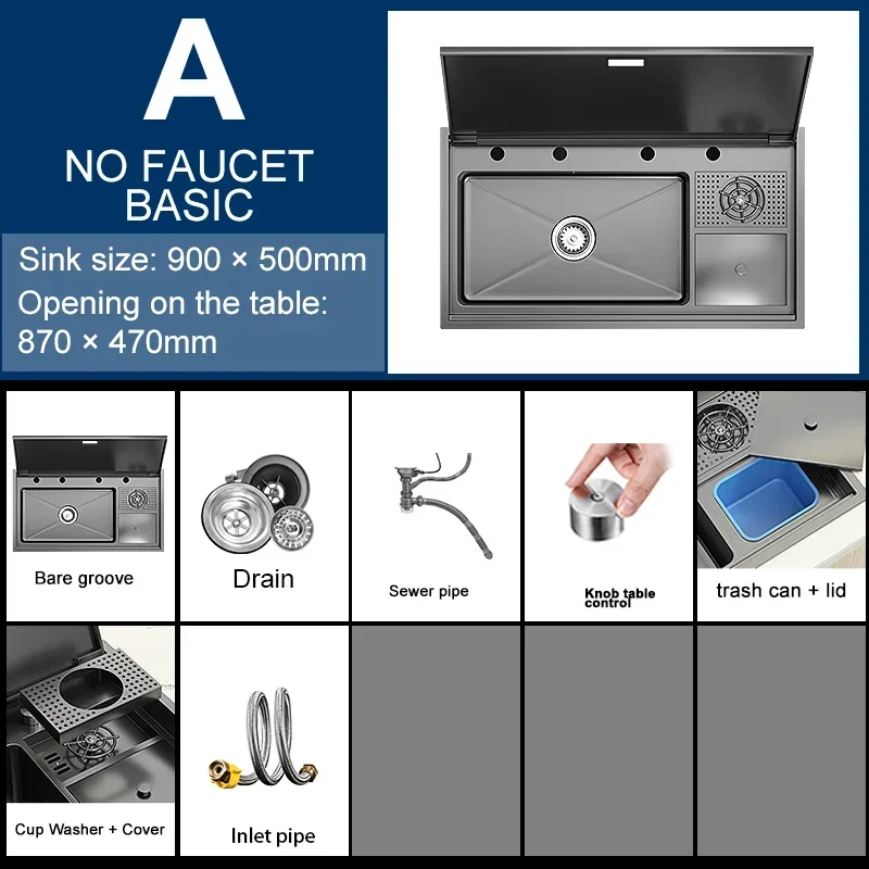 Hidden Cup Washer Sink With Cover Kitchen Sink Stainless Steel Washbasin Multifunctional Large Single Slot For Kitchen
