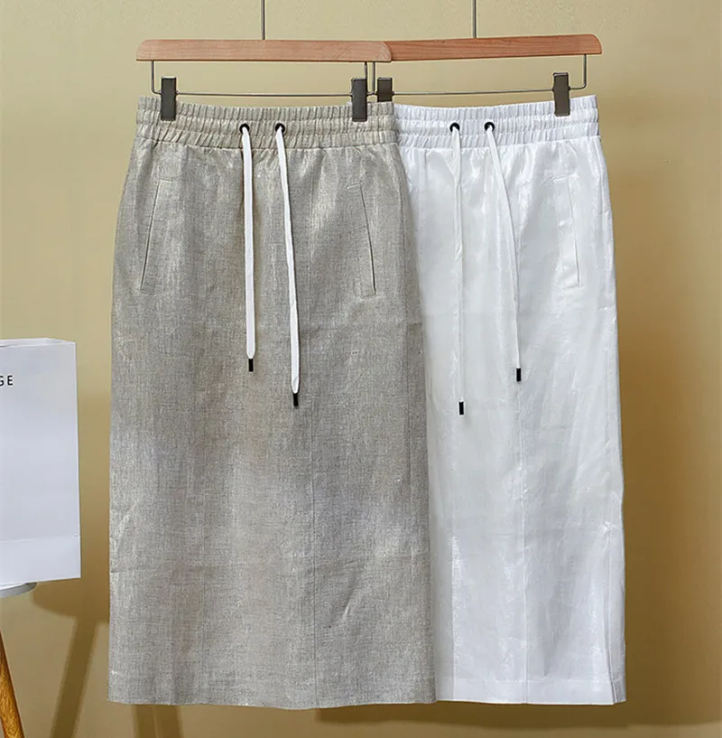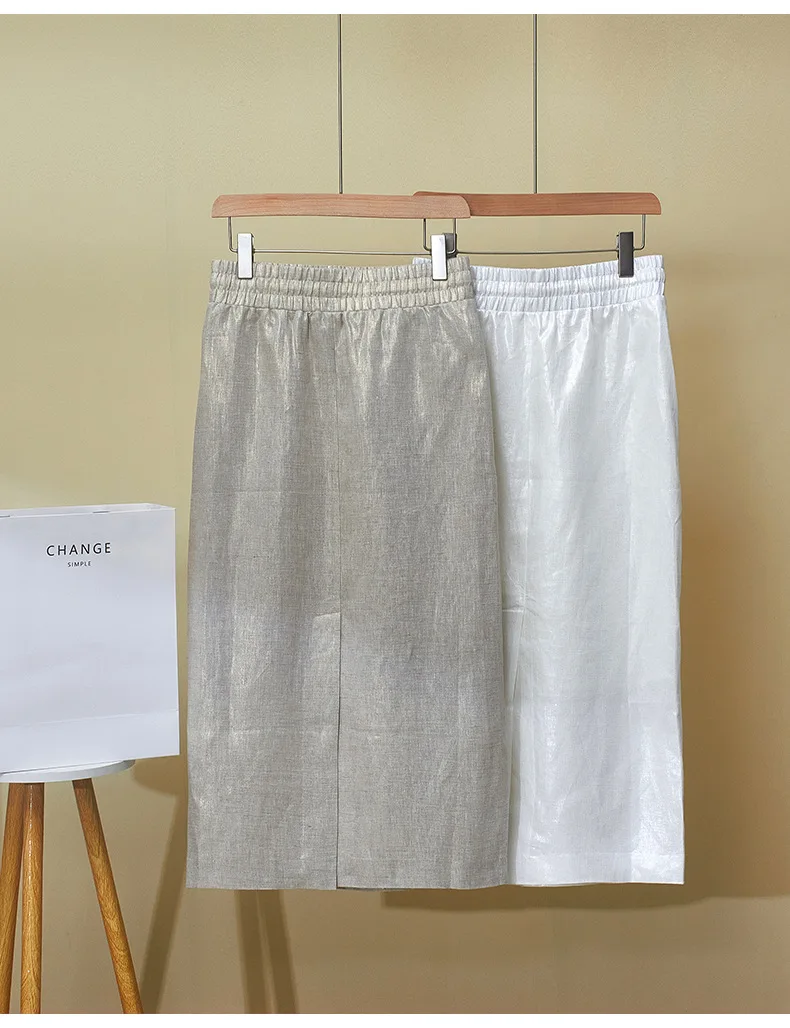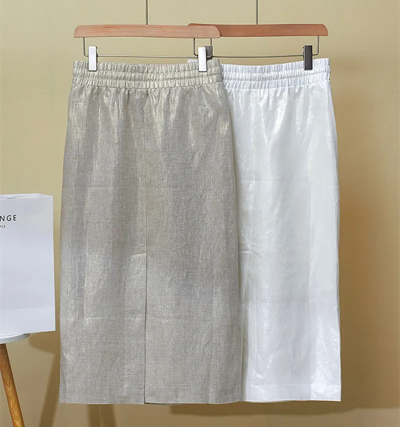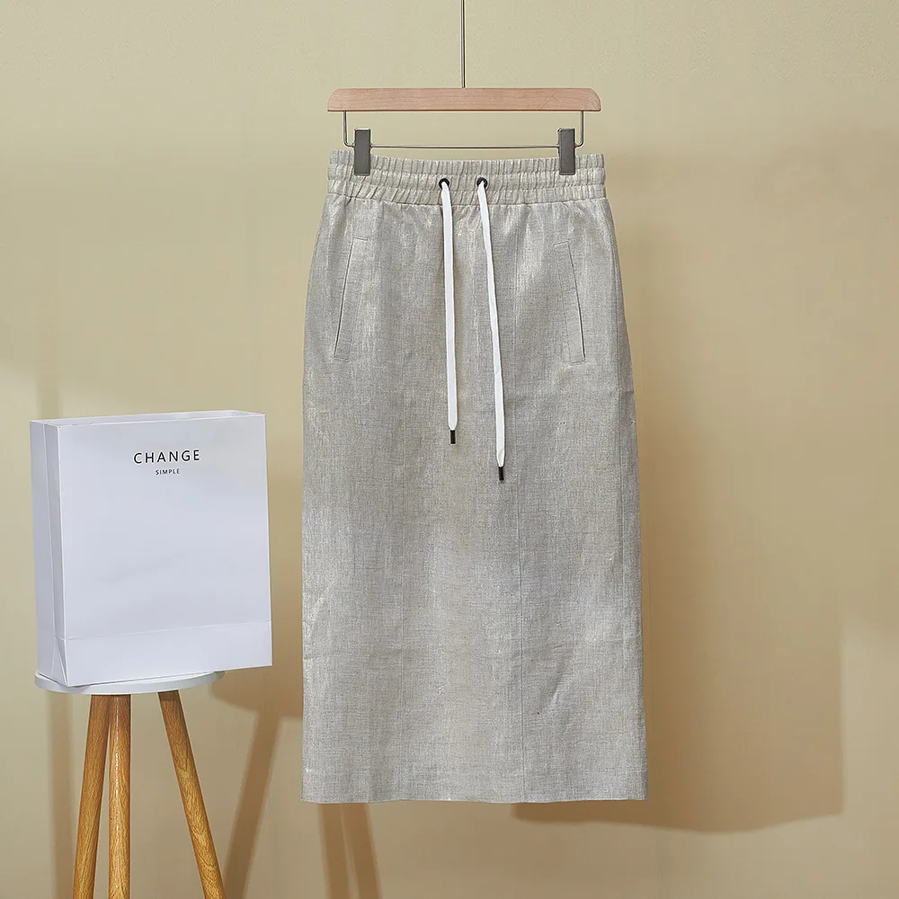 High Quality 2025 Women’s Summer New Gilded Texture Side Split Linen Skirt Overskirt