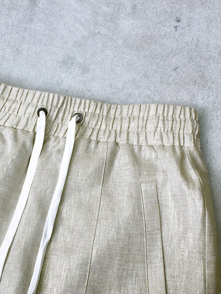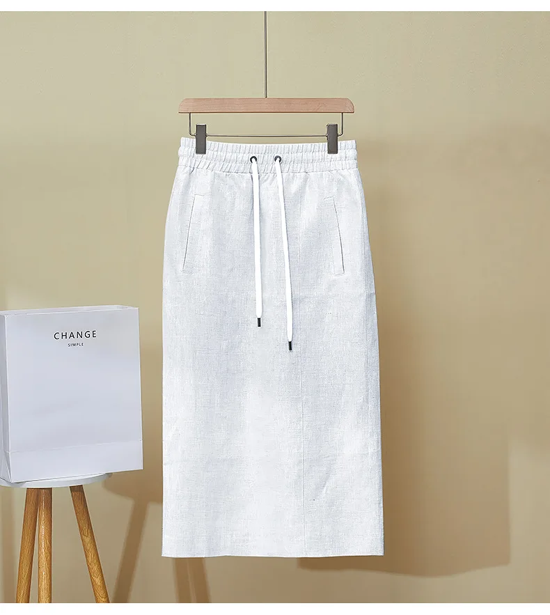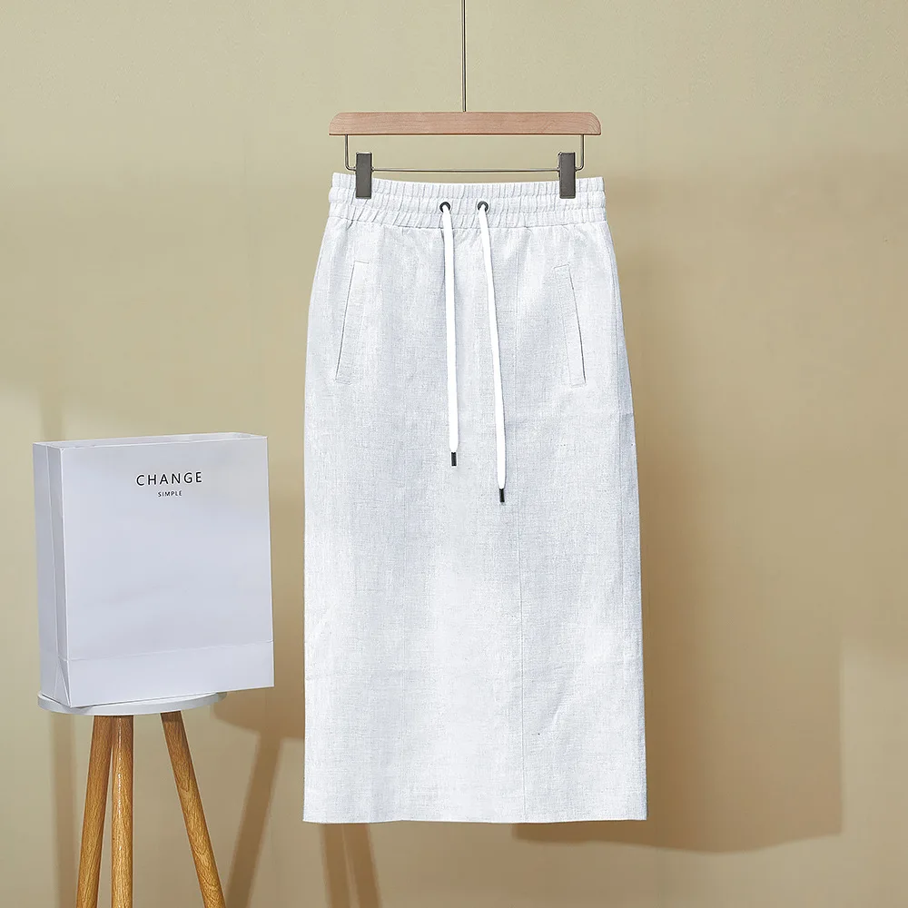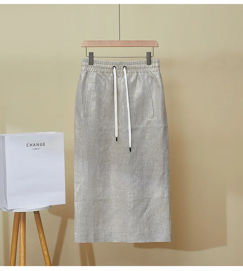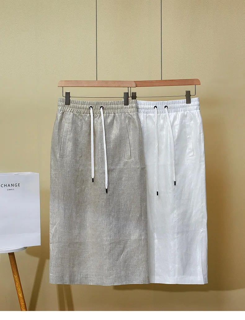 High Quality 2025 Women’s Summer New Gilded Texture Side Split Linen Skirt Overskirt