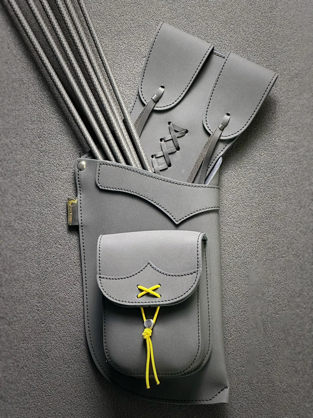 This reverse arrow pouch is made of high quality cowhide leather. Both right and left hand models can be customized to hold 24 arrows.
