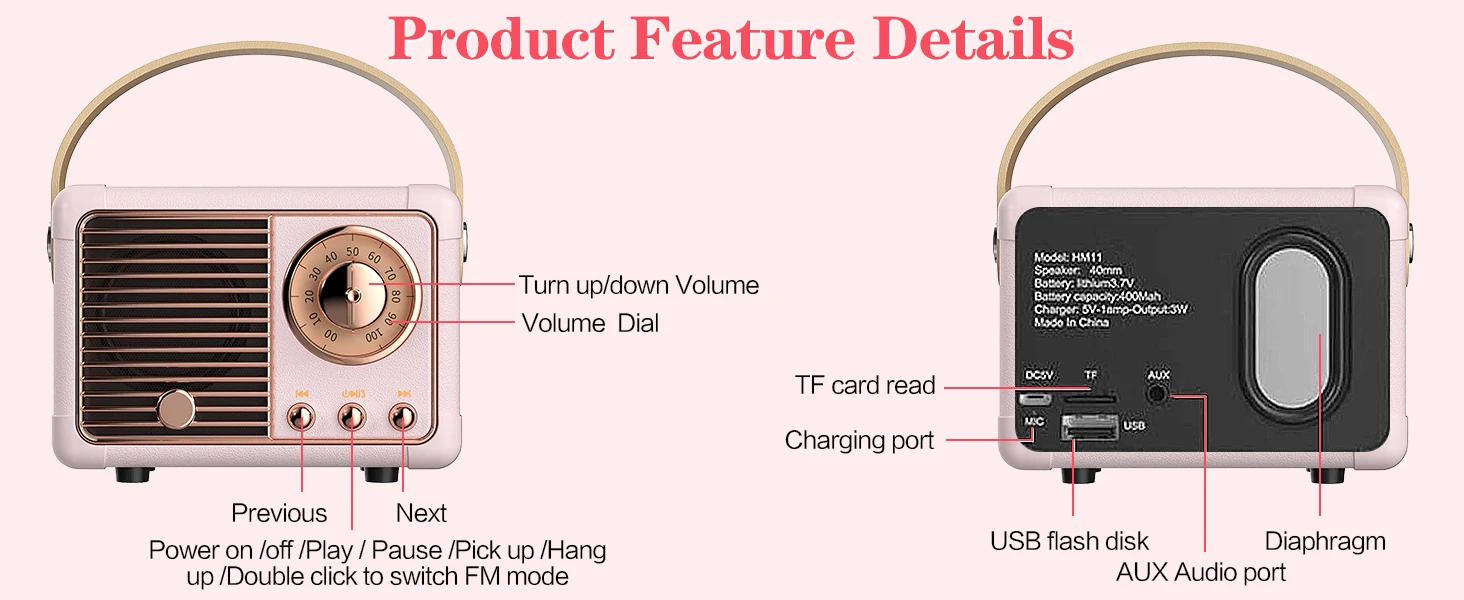 HM11 Retro Mini Bluetooth Speaker: Big Bass, Stereo Sound, Ultimate Portability. The Perfect Holiday Gift for Your Girlfriend