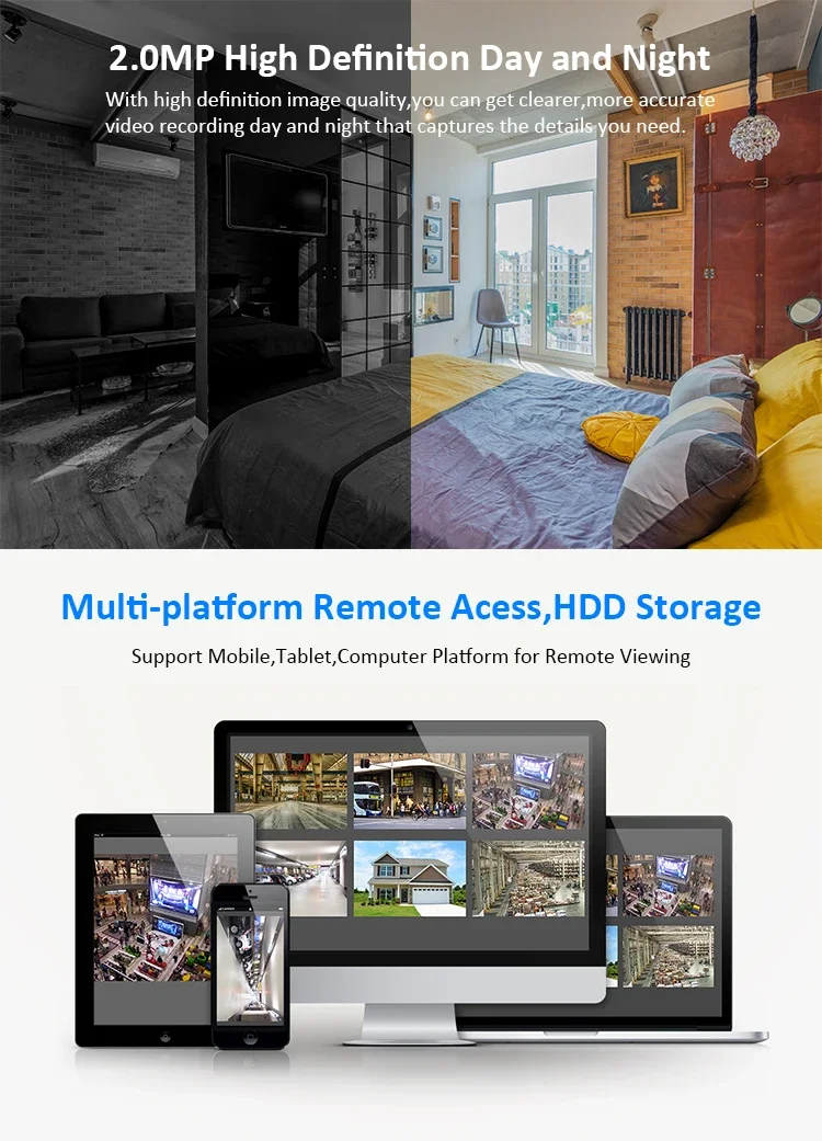 *Support P2P cloud service, mobile app and computer client remote preview;