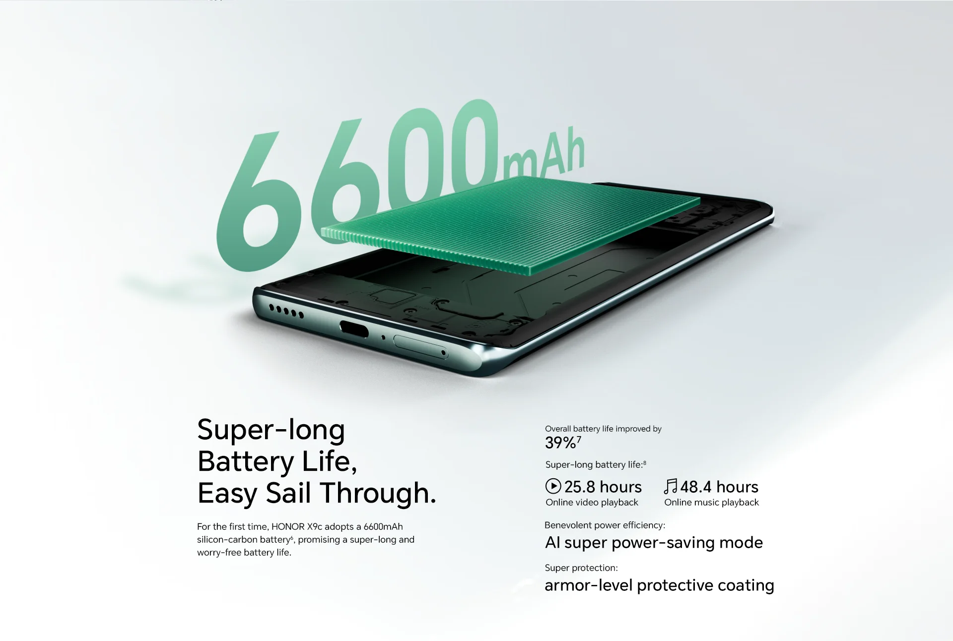 HONOR X9c 5G Smartphone Global Version 6.78″ Anti-drop 120Hz Curved Screen 108MP Triple Cameras 6600mAh Battery Android Dual SIM