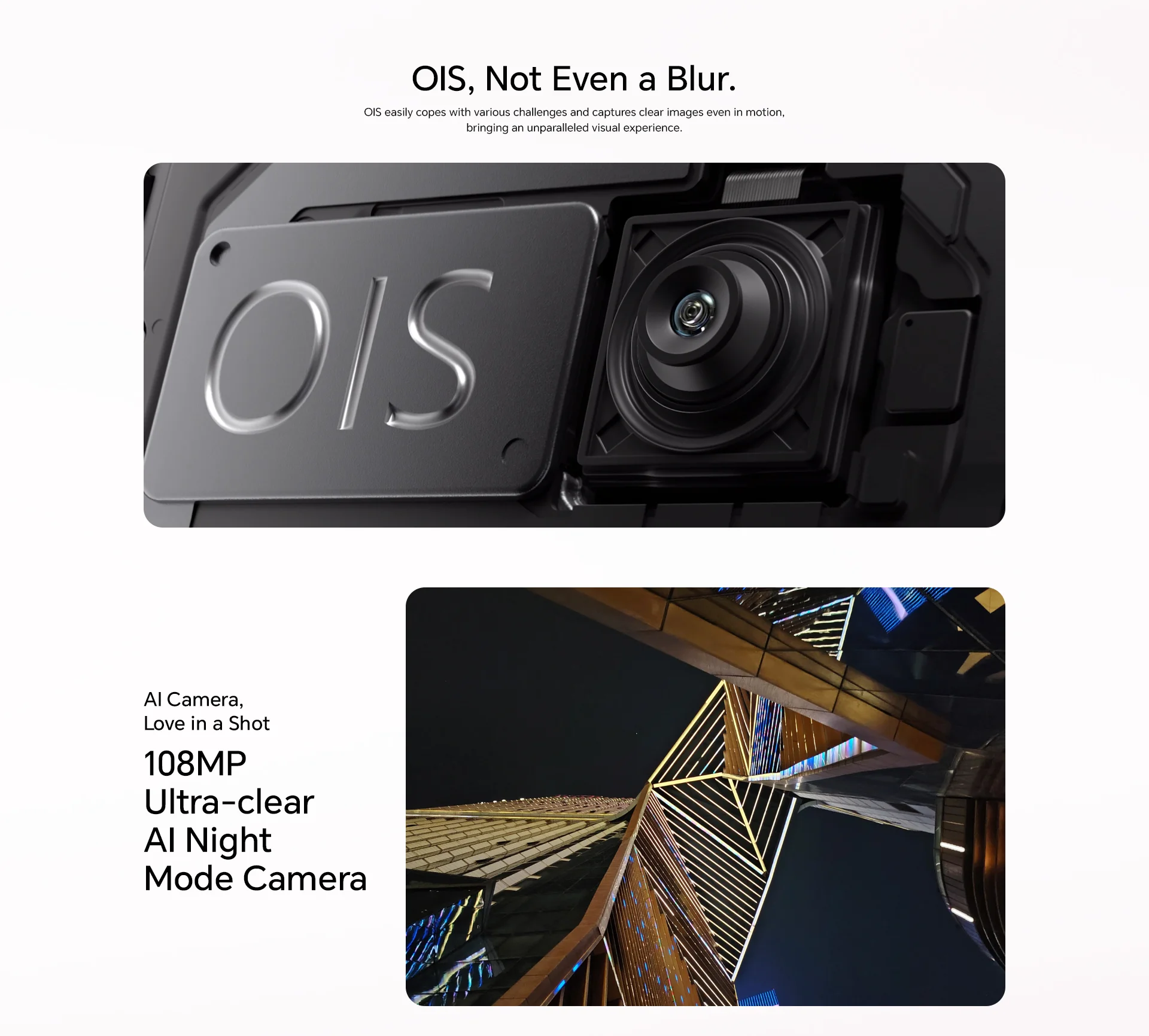 Rear Camera:108MP Main Camera (F1.75),OIS+5MP Wide Camera(F2.2)