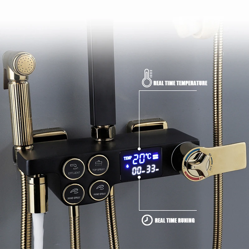 Hot Cold Shower System Bathroom LED Digital Shower Set Wall Mount Smart Thermostatic Bath Faucet Square Head SPA Rainfall Grifo