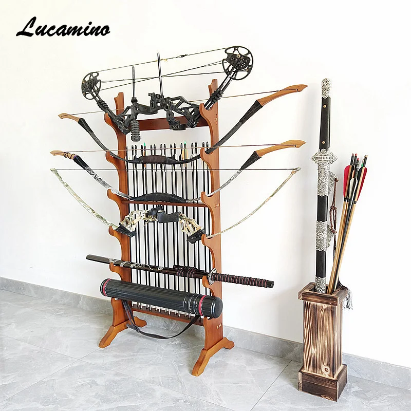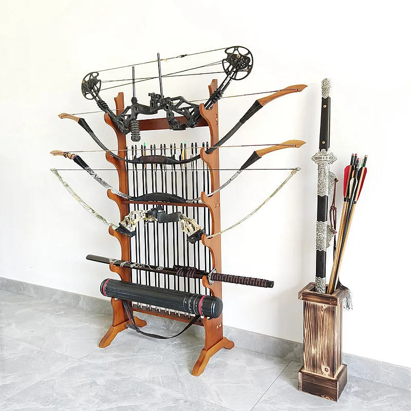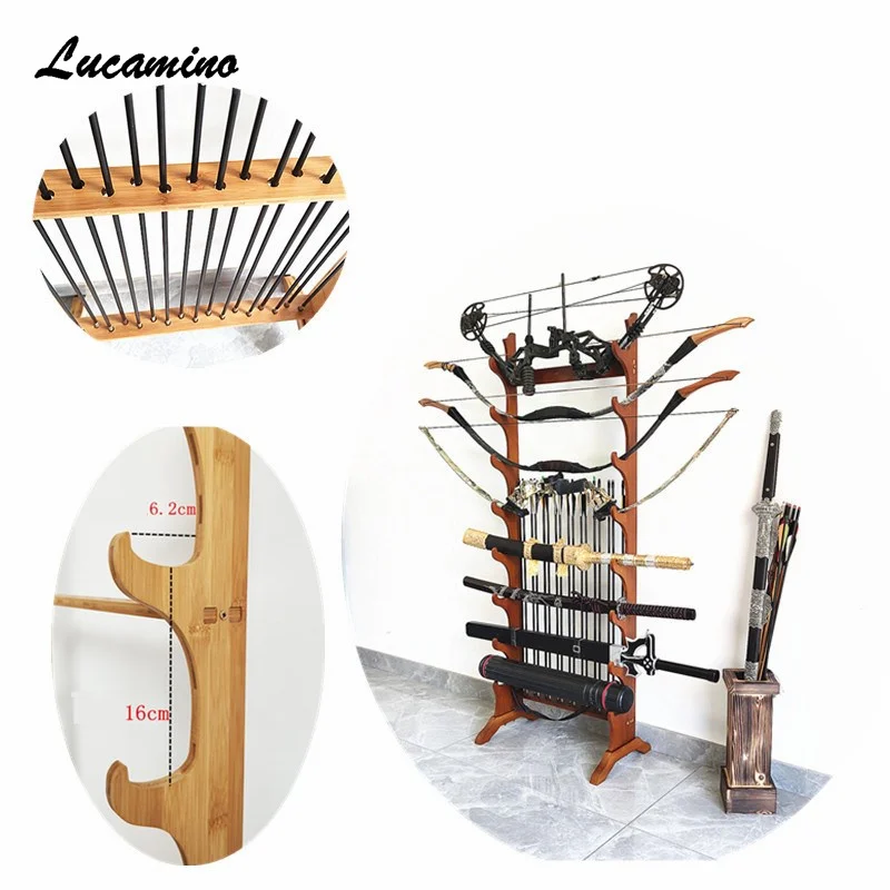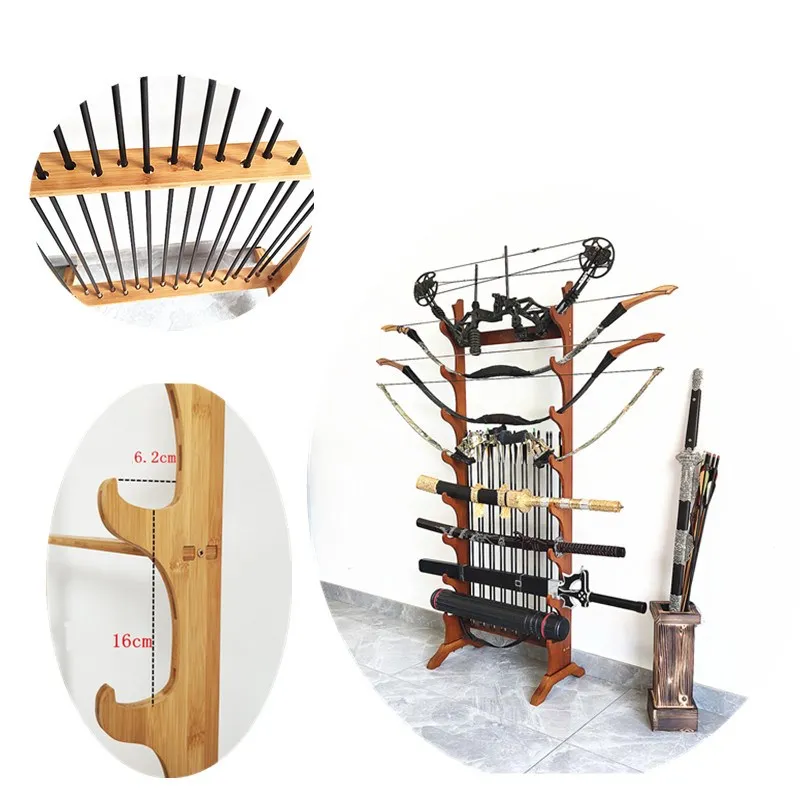 Hot Wooden Bamboo Arrow Bow Sword Rack Display Stand Storage Rack Easy Installation Multi-function Display Rack