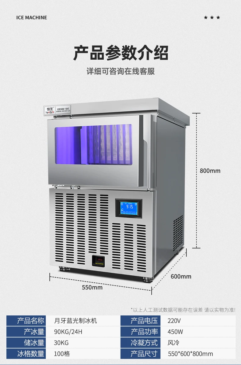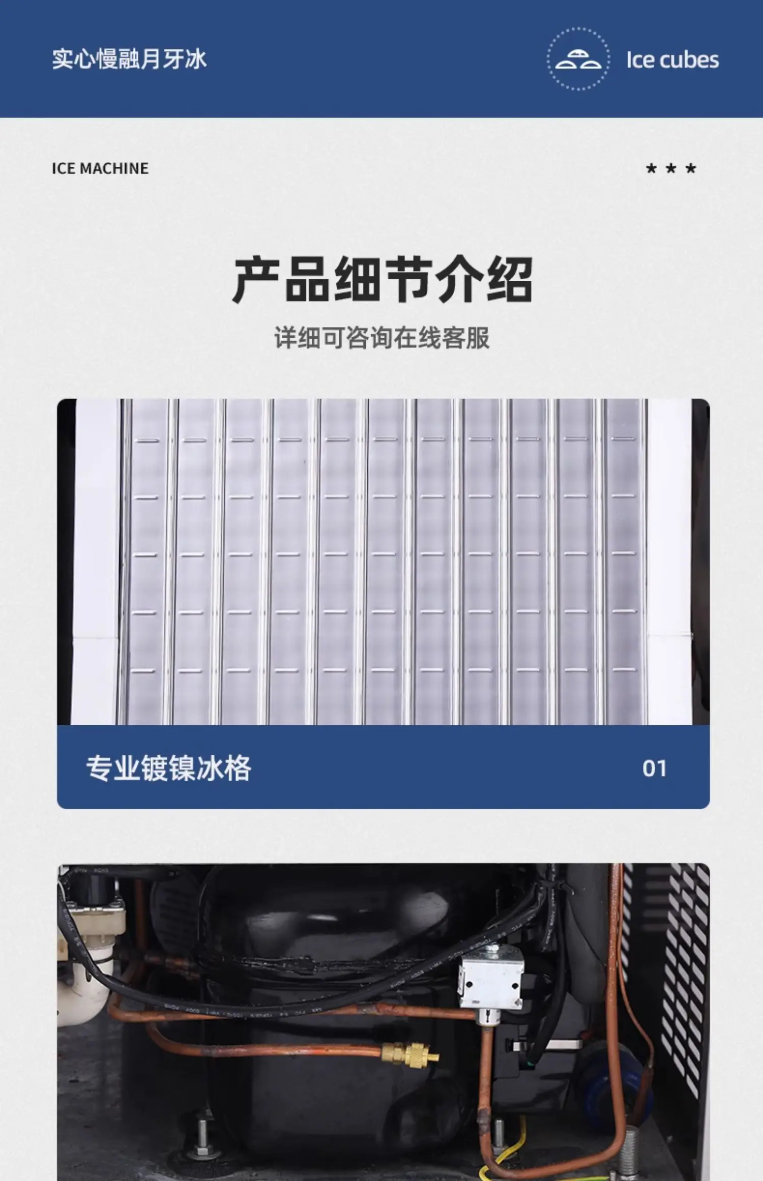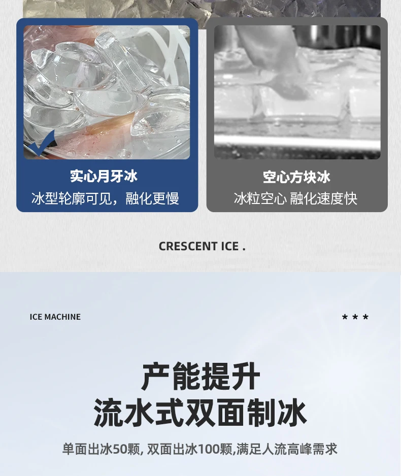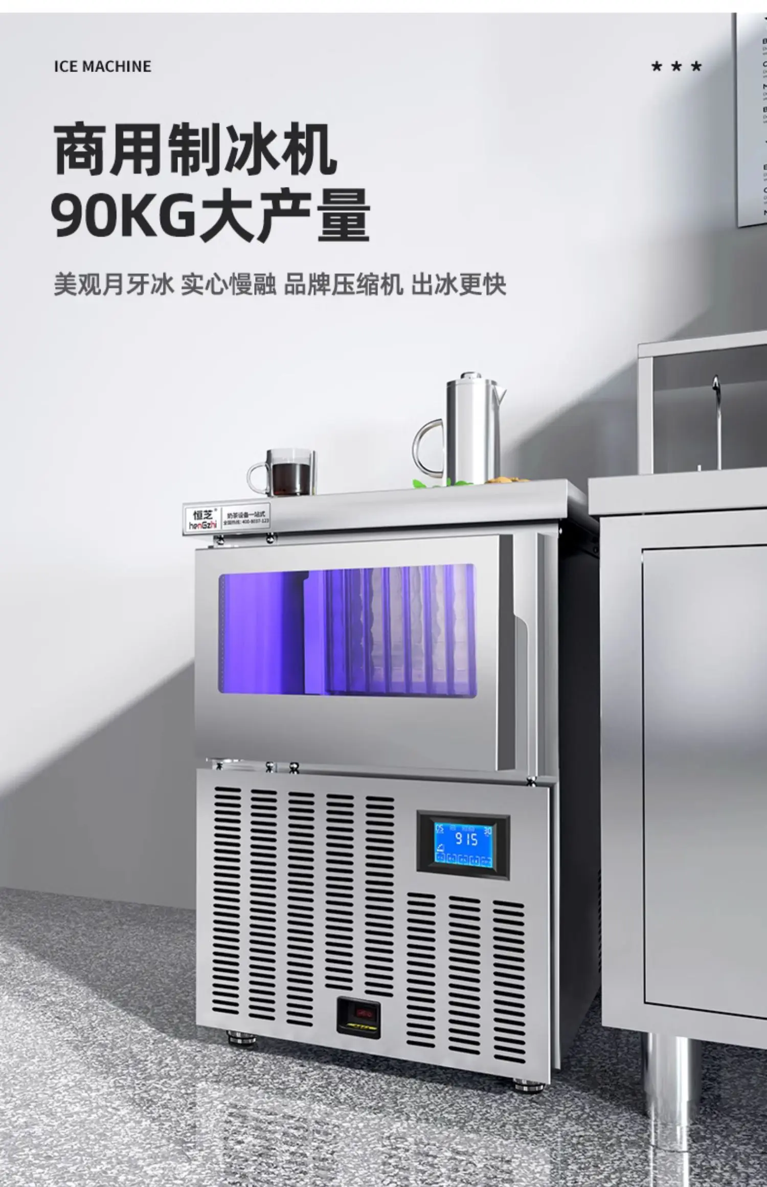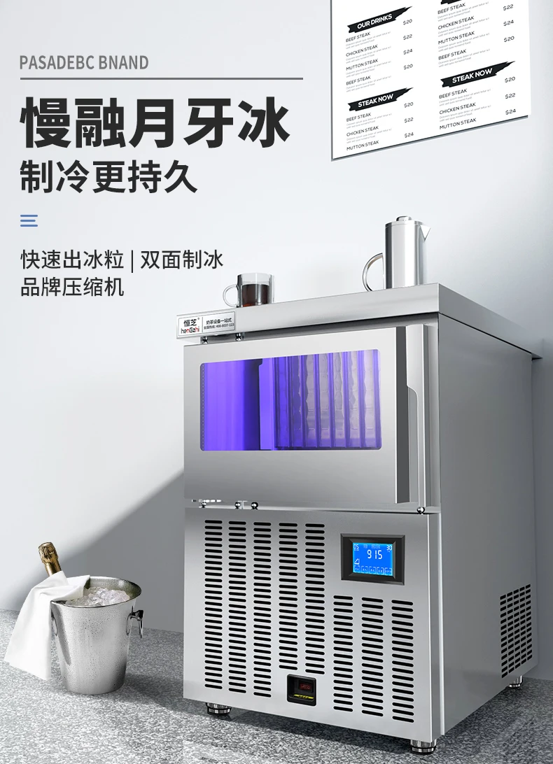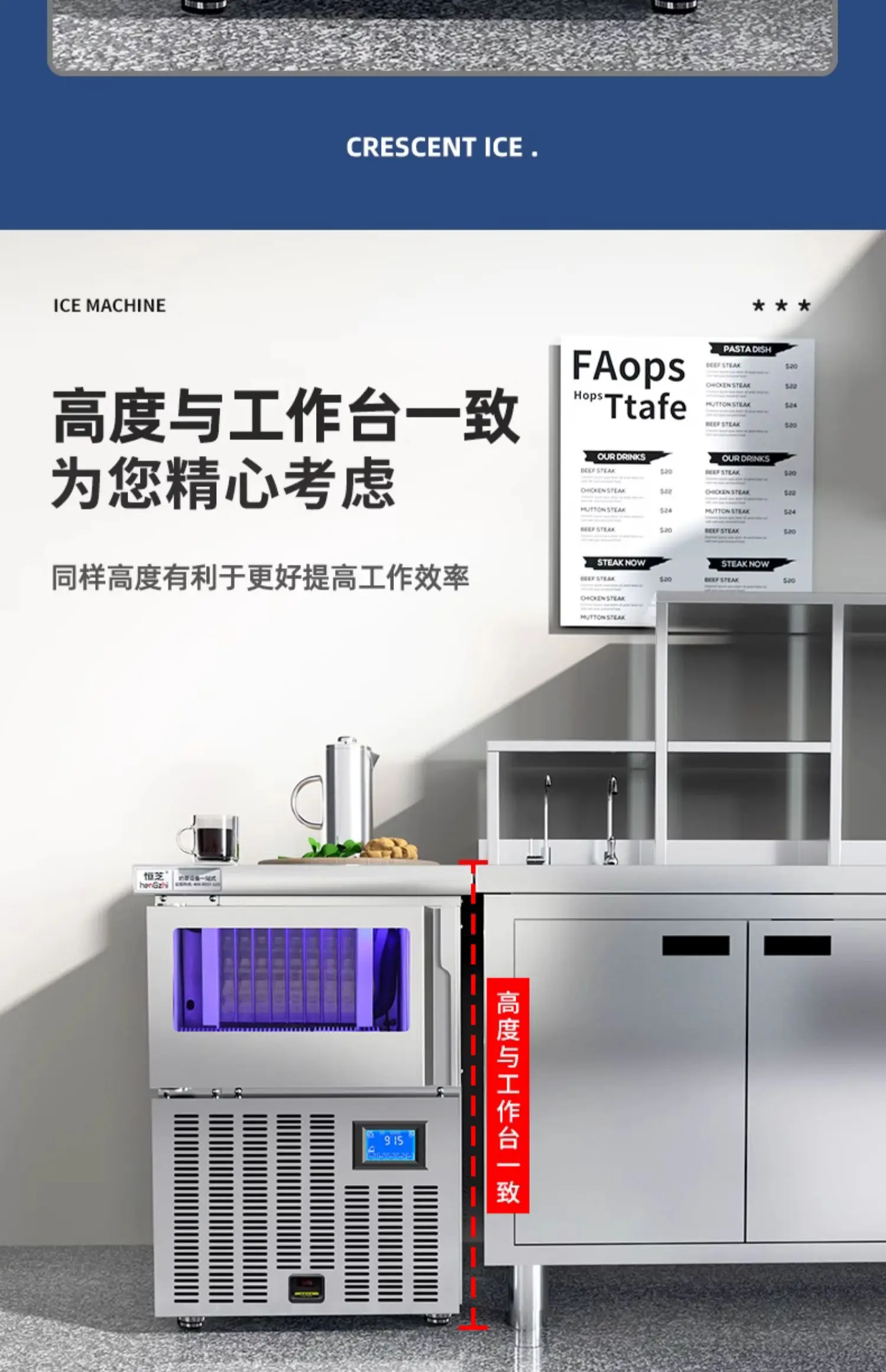 HXL Crescent-Shaped Ice Maker Fully Automatic Blue Light Bar Counter Ice Cube Maker