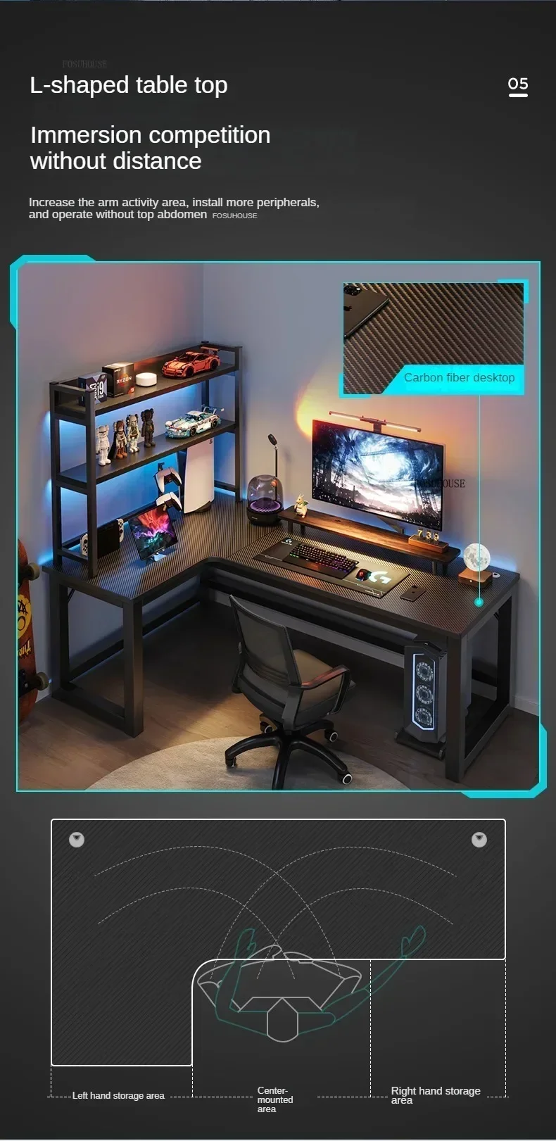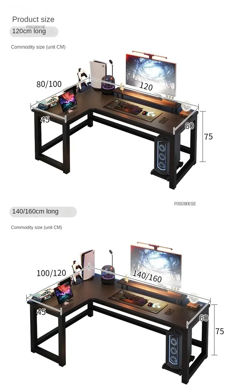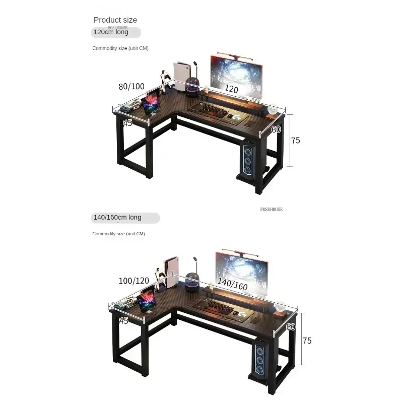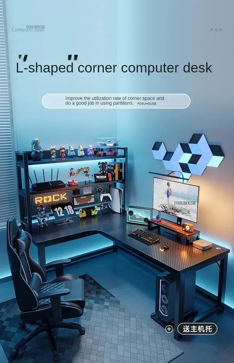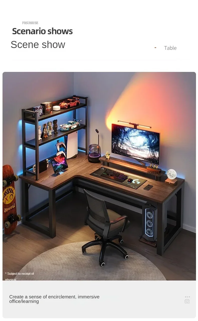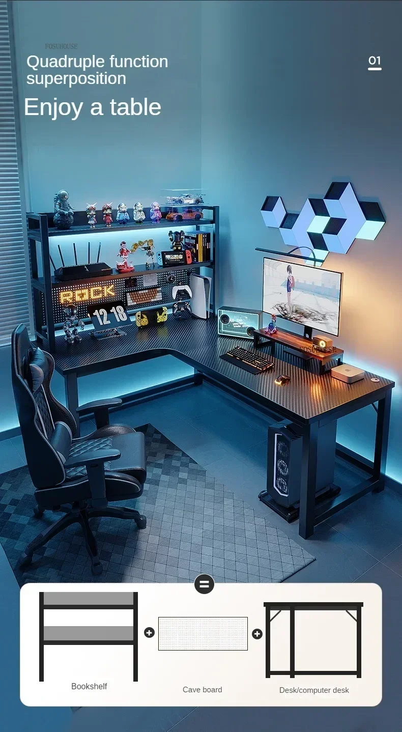 Nordic L-type Computer Desks Office Furniture Desktop Computer Esports Table Modern Internet Leisure Gaming Desk with Bookshelf