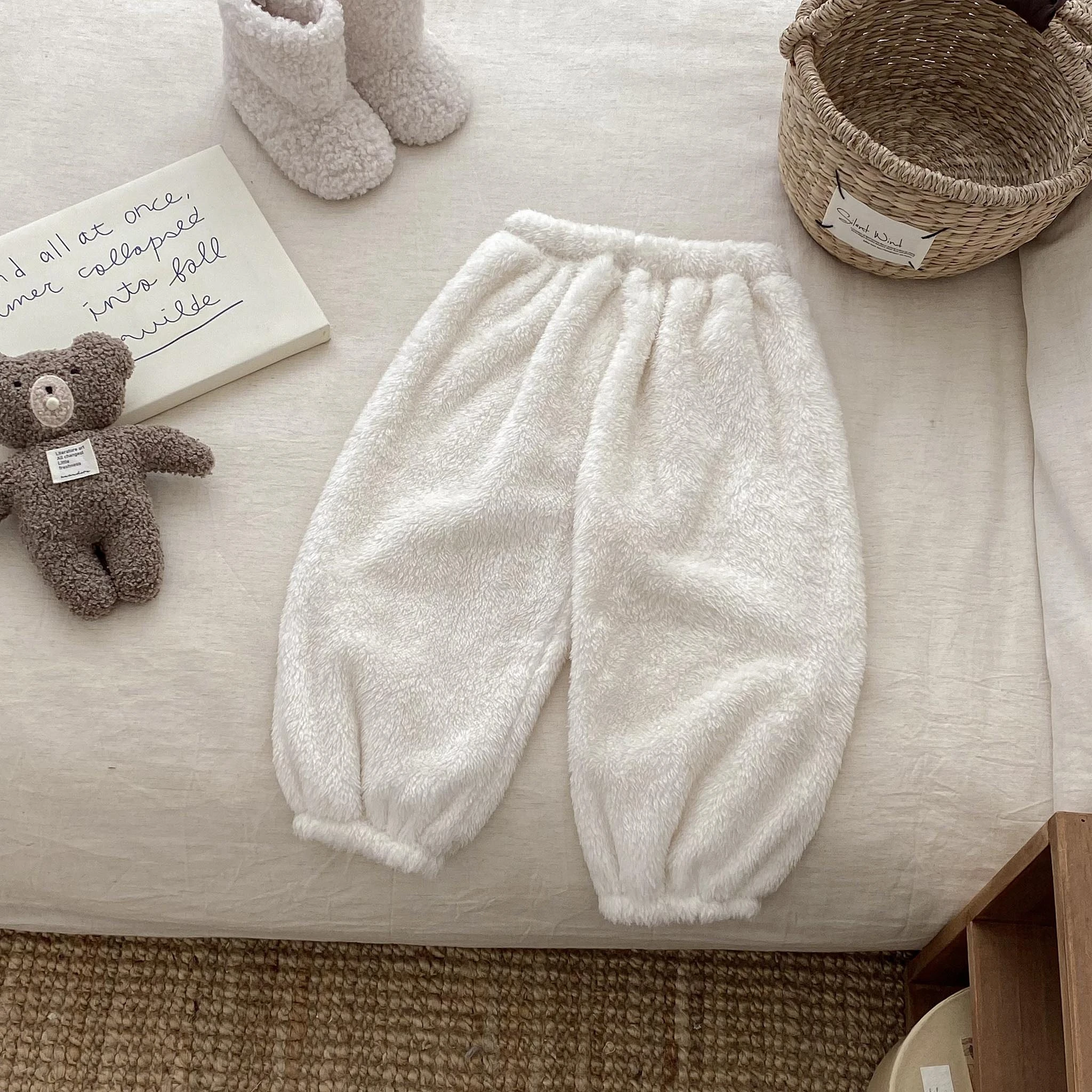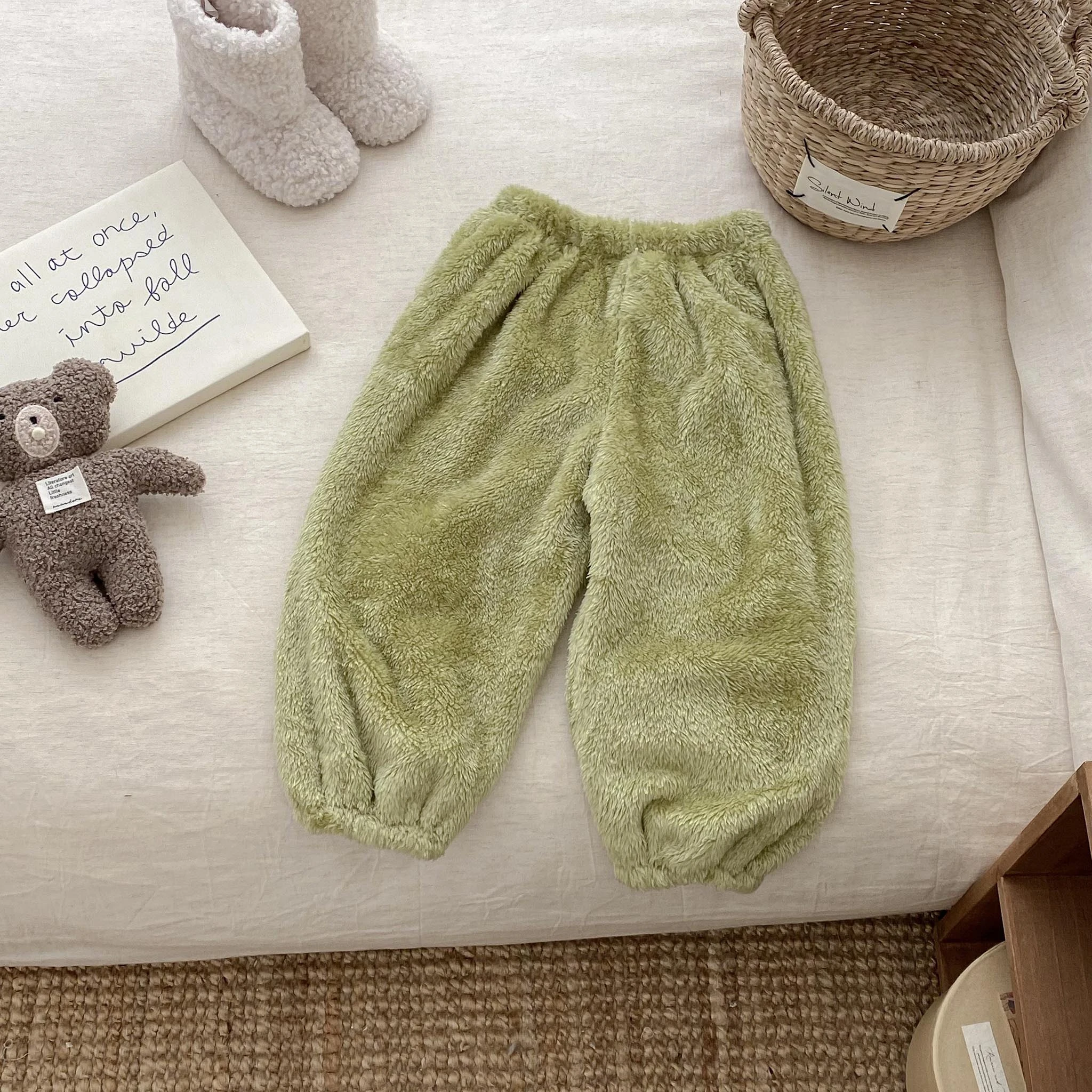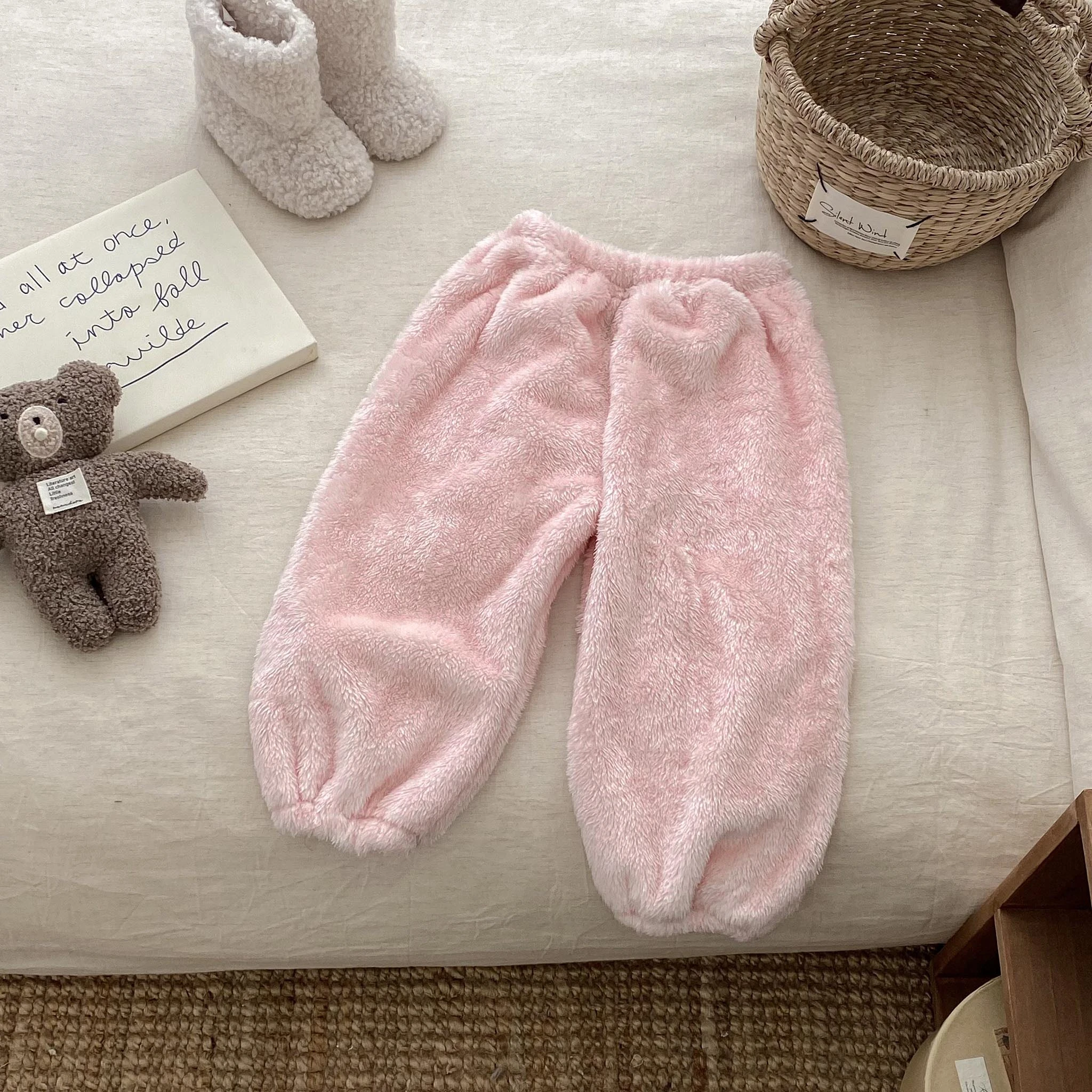 Infant Plush Pants Autumn Winter Pajamas Pants Simple All-match Trousers Thin Velvet Pants Baby Girls Casual Pants Home Wear