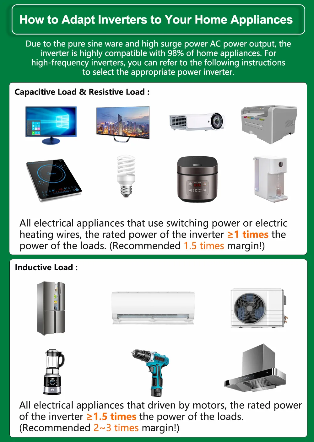 3. With twice the surge power (16000W), it effortlessly starts inductive loads that have high inrush currents.