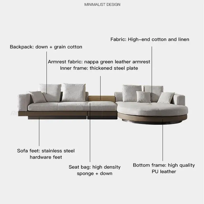 Italian Couch For Living Room Minimalist Cotton And Linen Fabric Sectional Sofa Large Flat Floor Designer Living Room Sofas