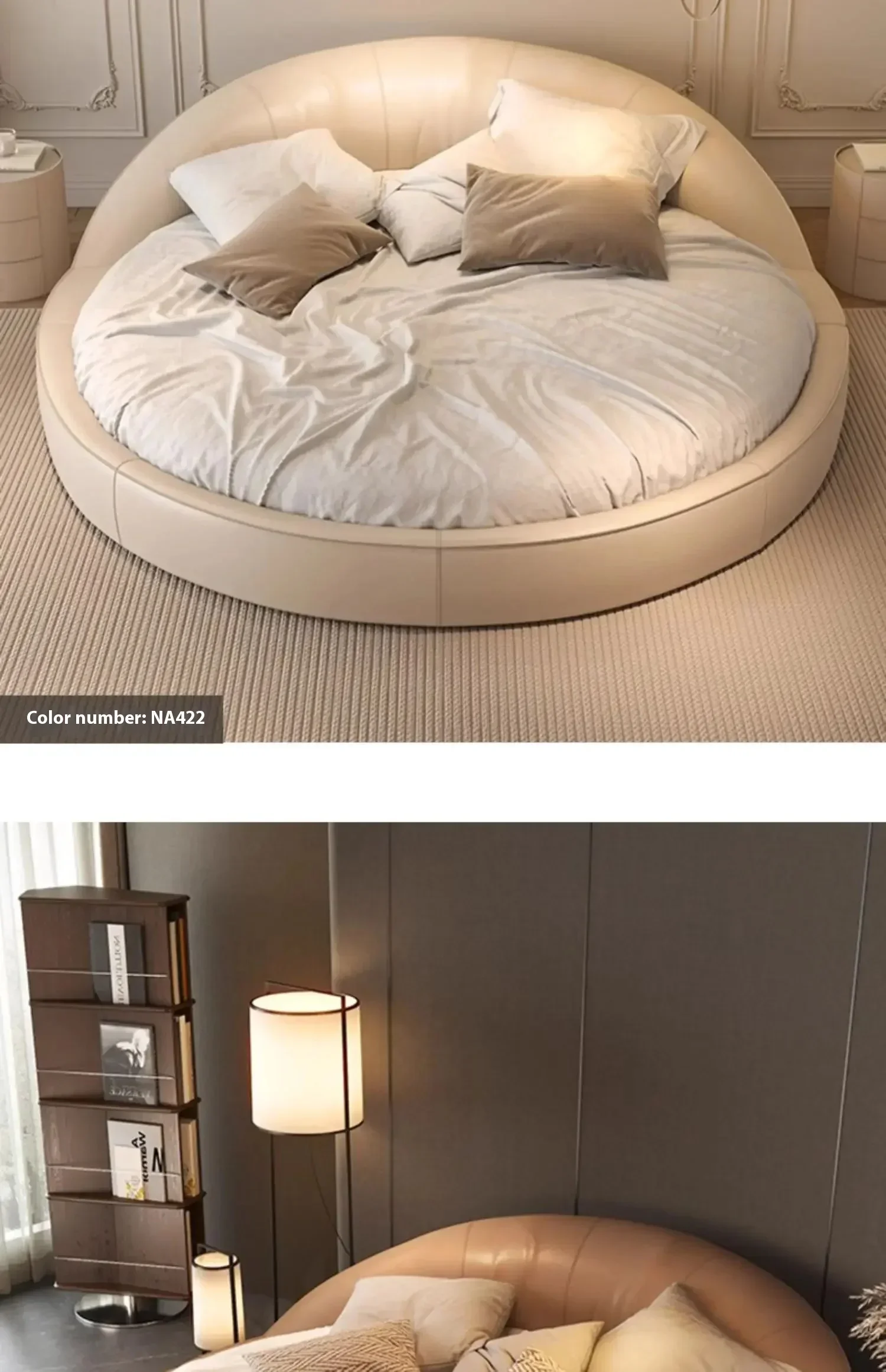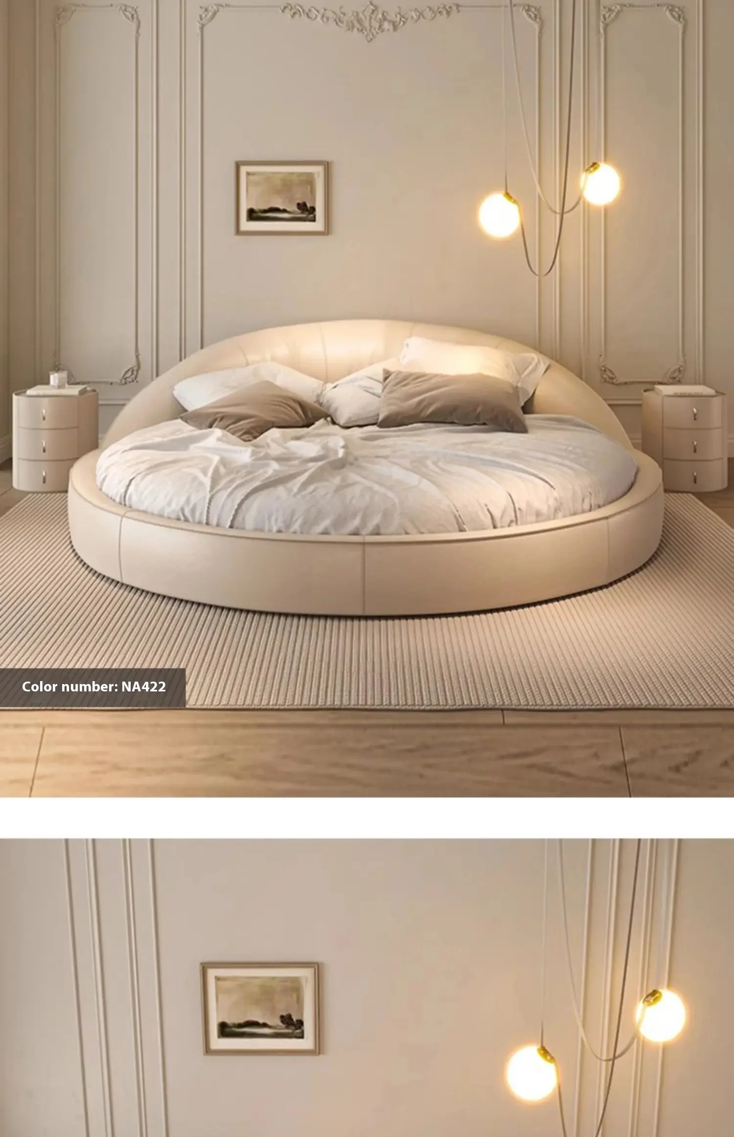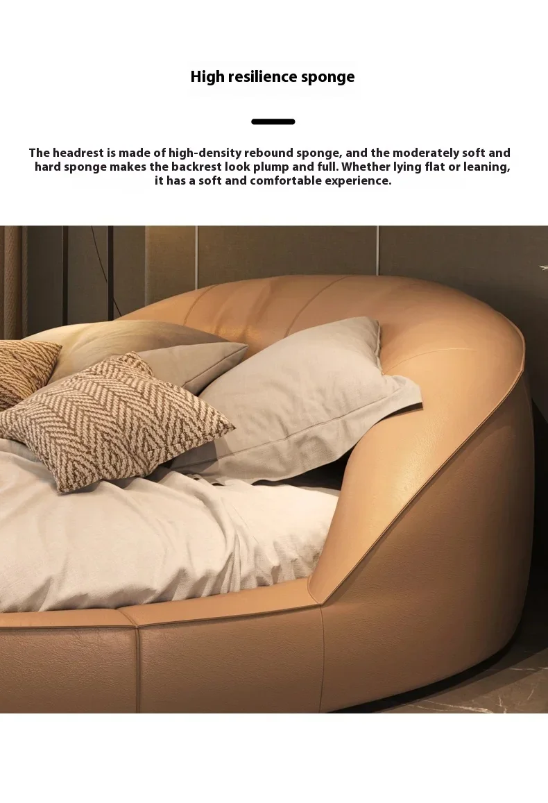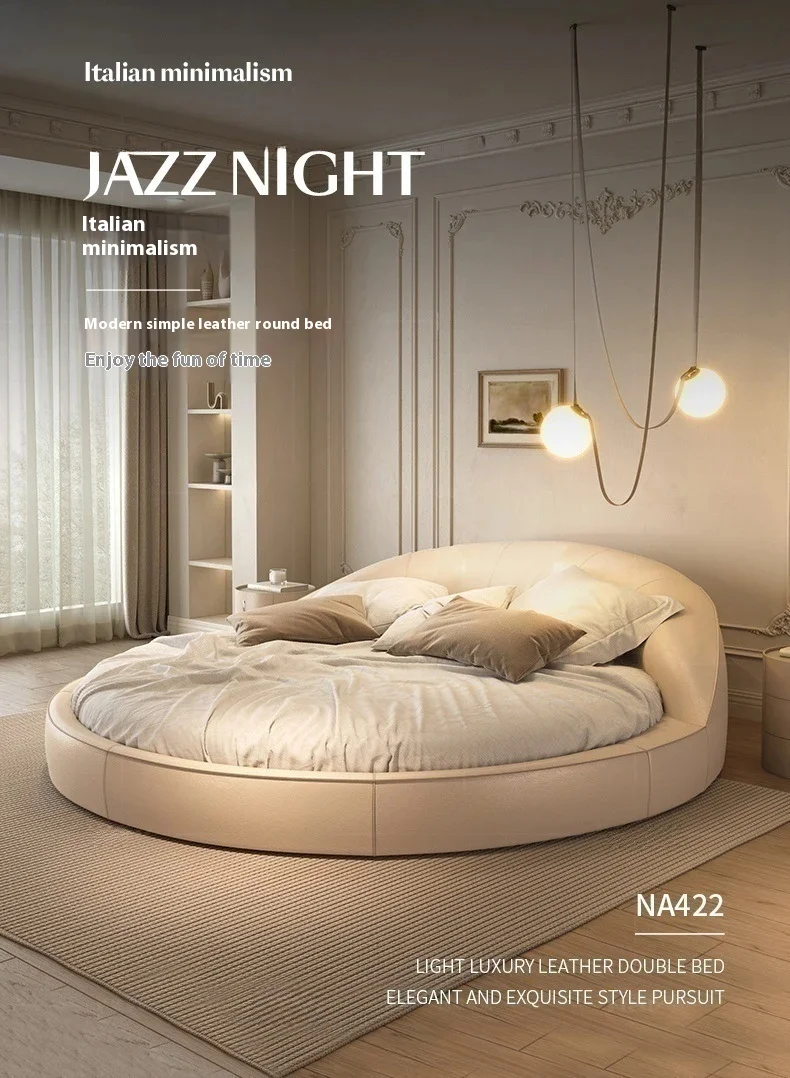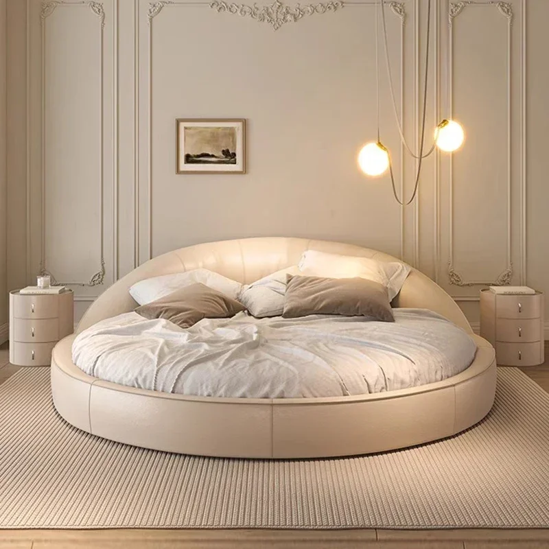 Italian Minimalist Aesthetics Round Bed Light Luxury Cream Wind Princess Bed Wedding Bedroom Sleeping Beliche Home Furniture