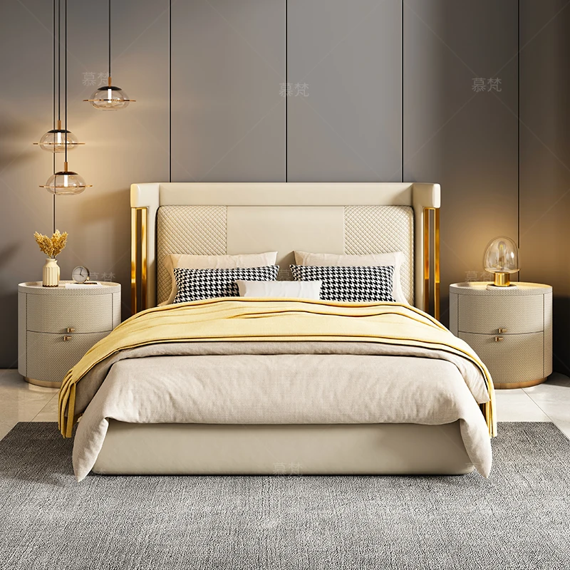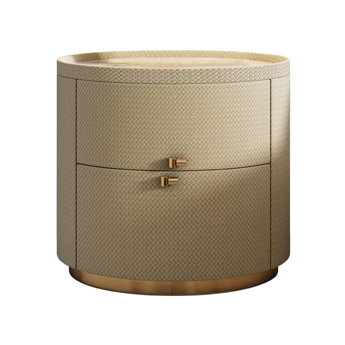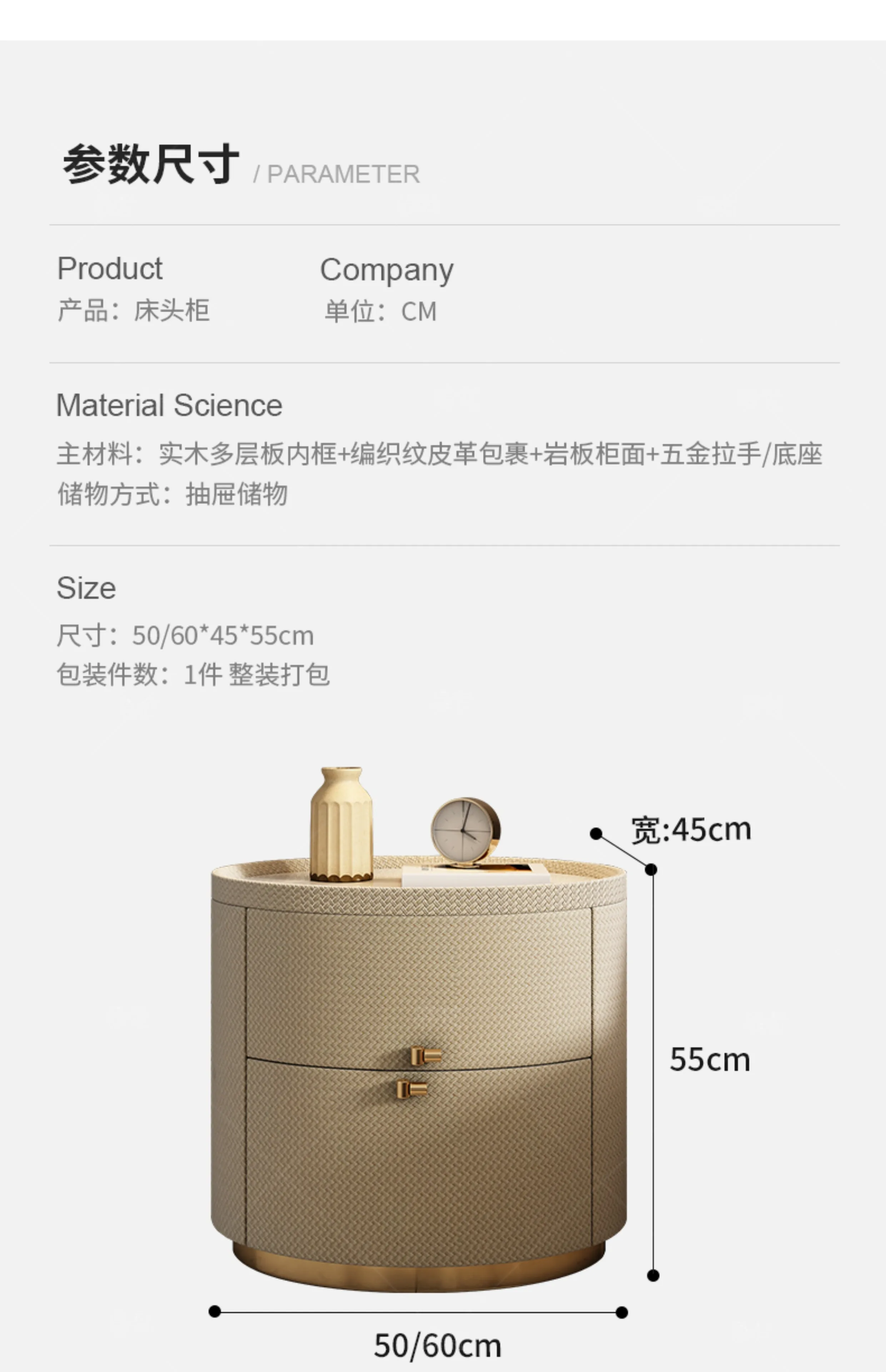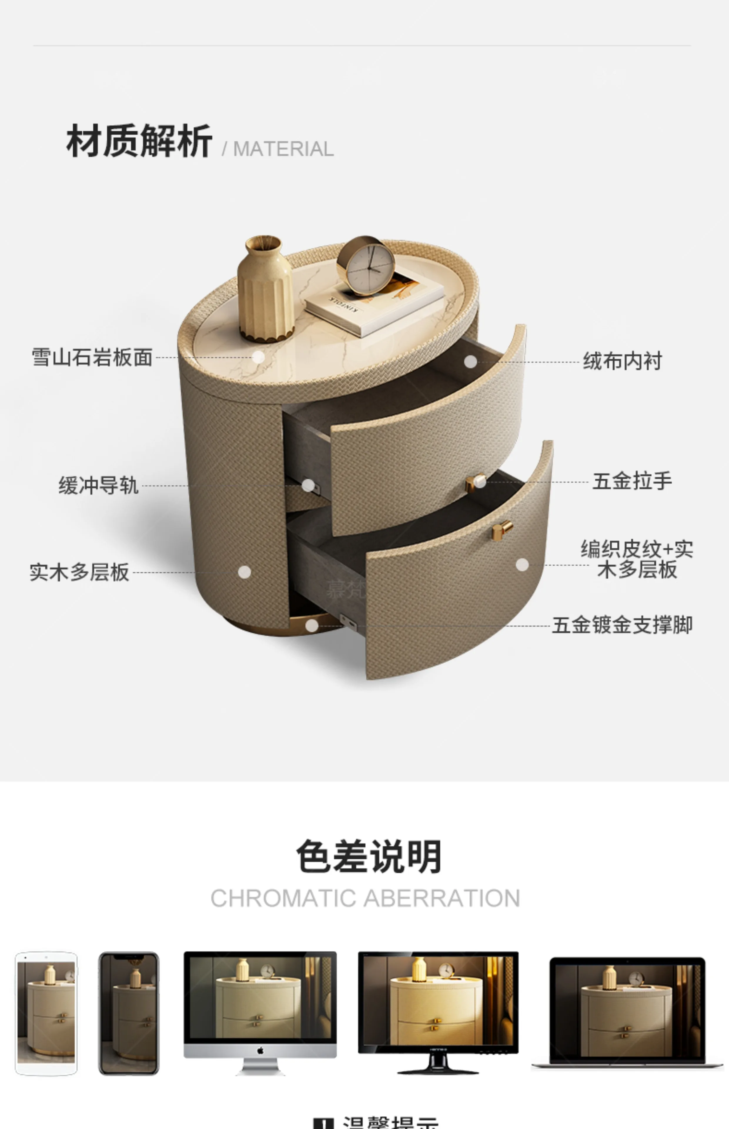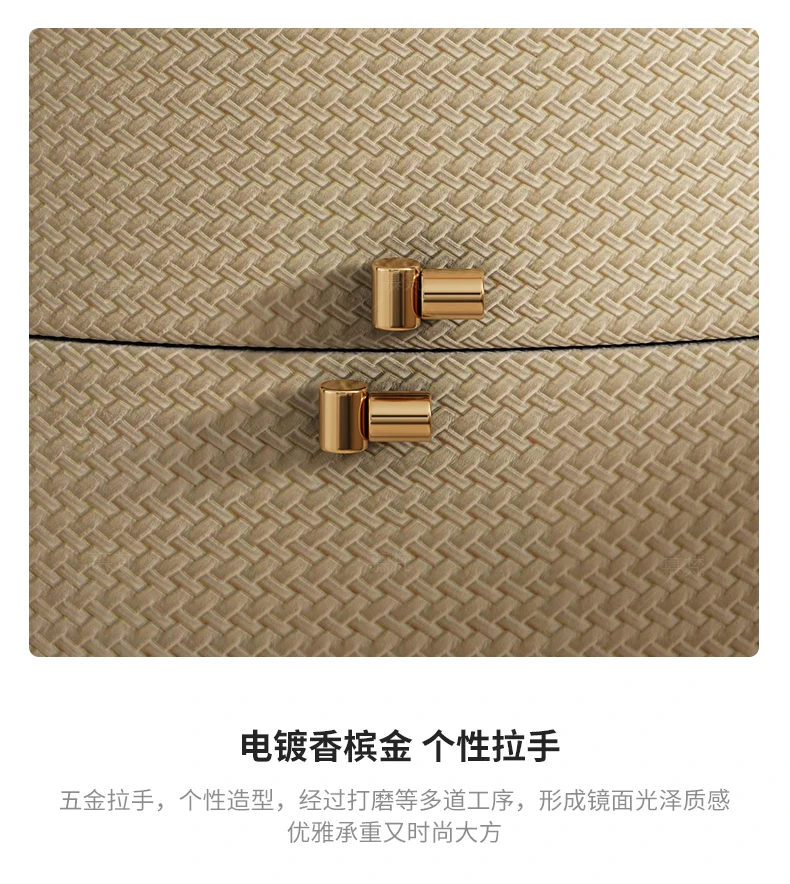 Italian minimalist designer bedside table light luxury rock slab Fendi bedroom high-end oval leather art Internet celebrity beds
