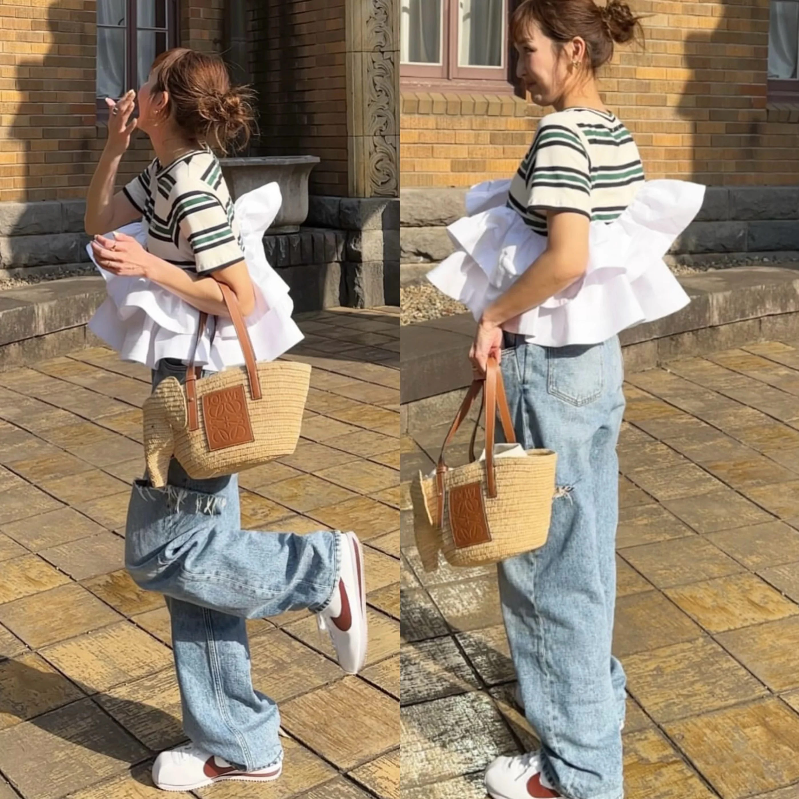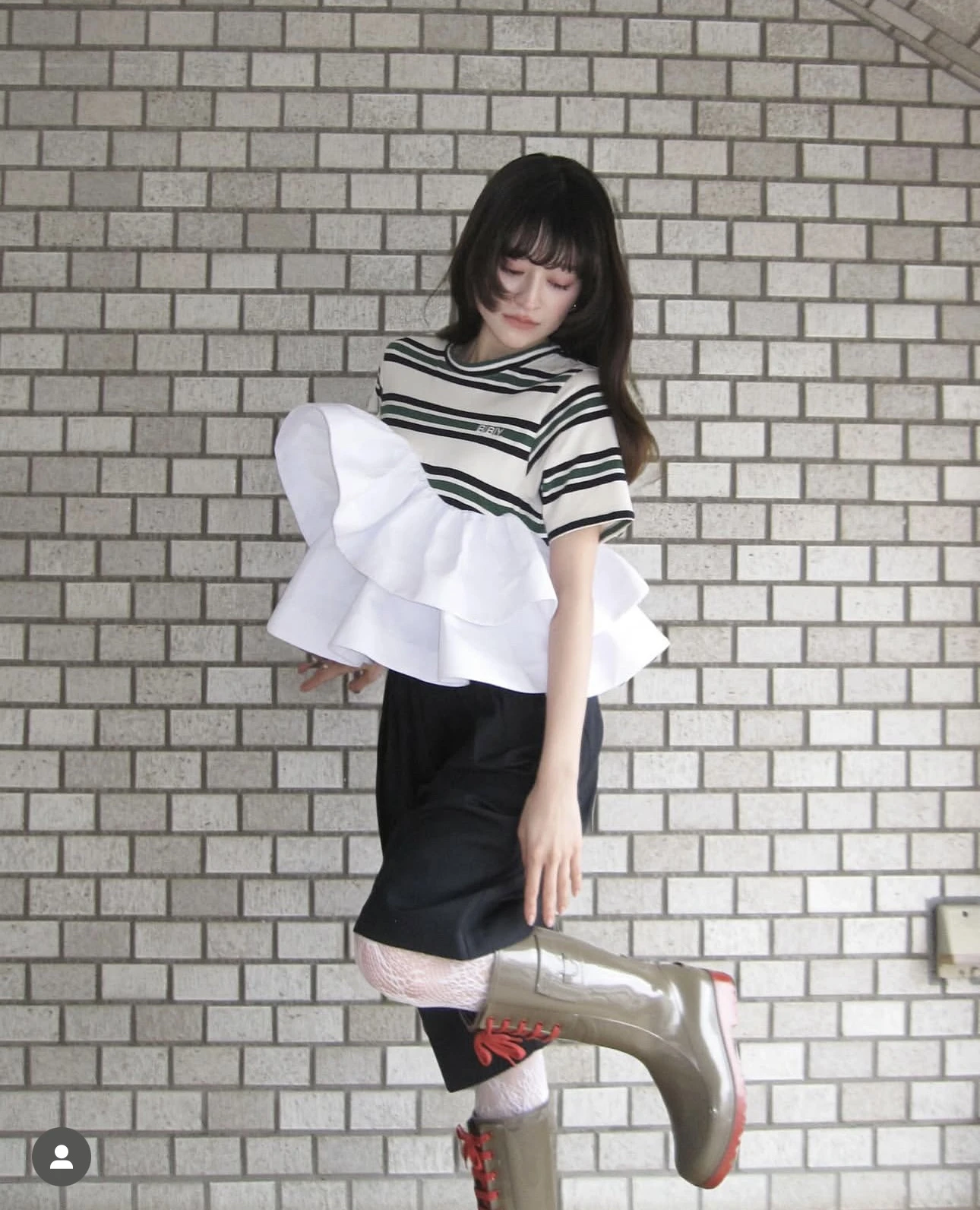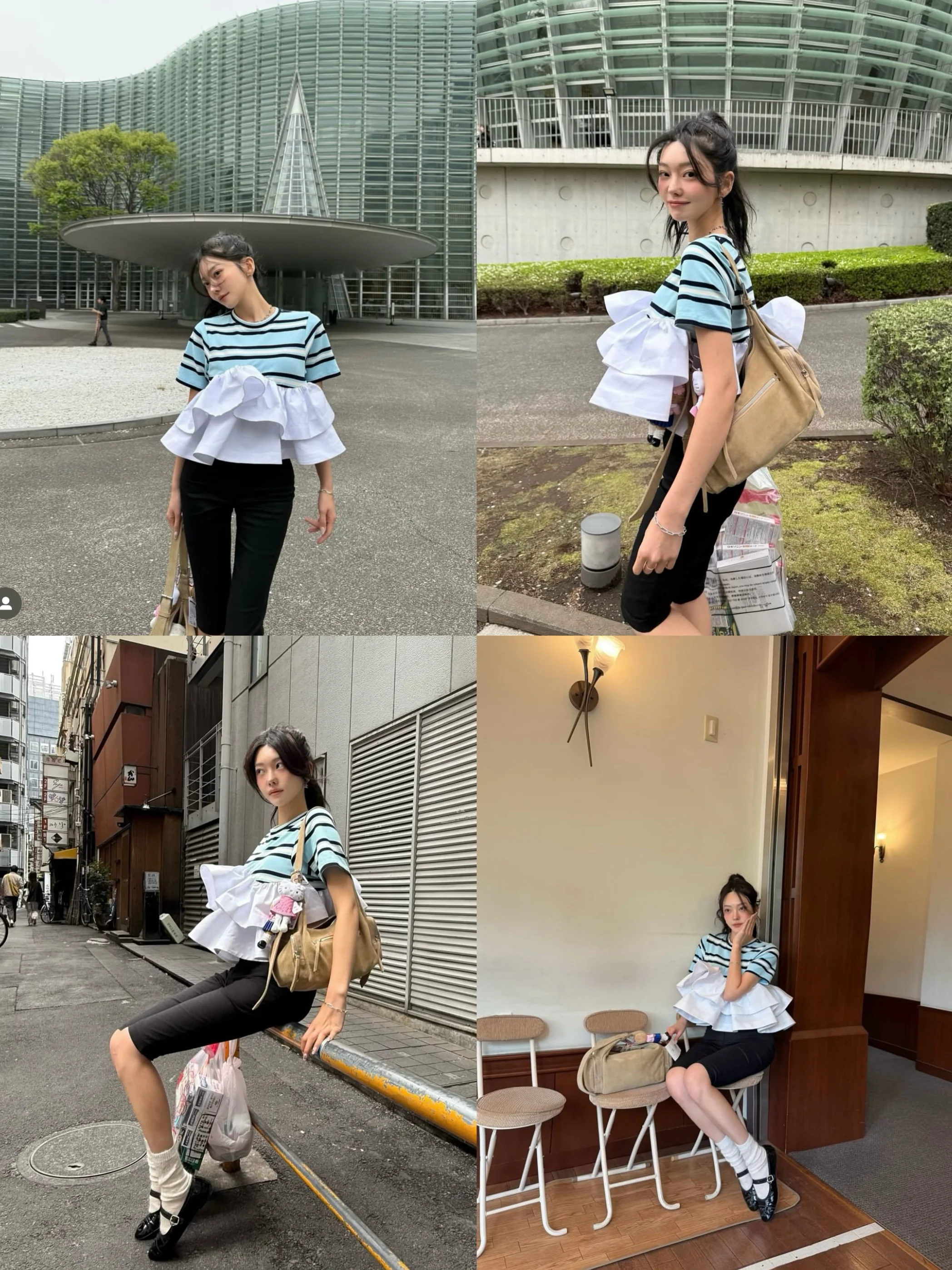 Japanese Style Sweet T-shirt 2025 Summer New Women’s Ruffle Edge Splicing Striped Top Ladies Casual Bud Tees Women Clothing