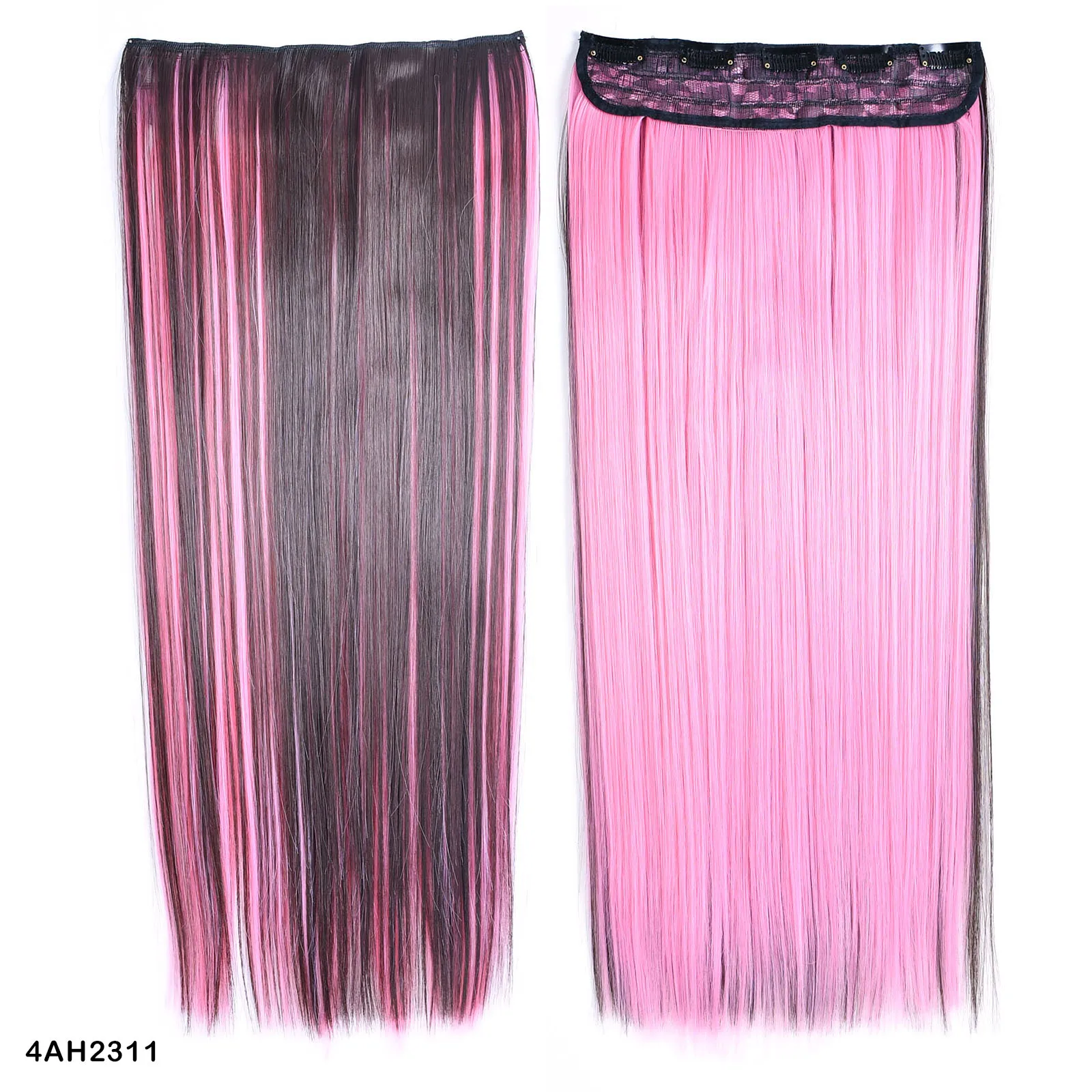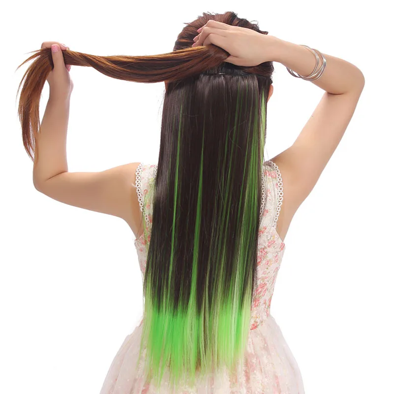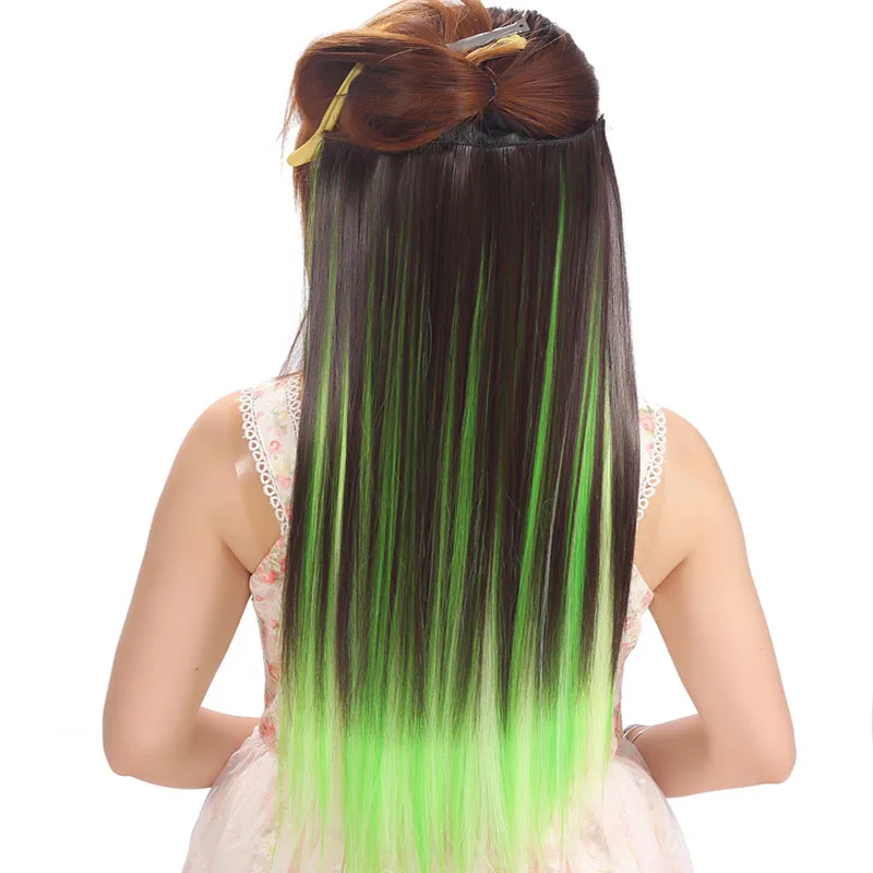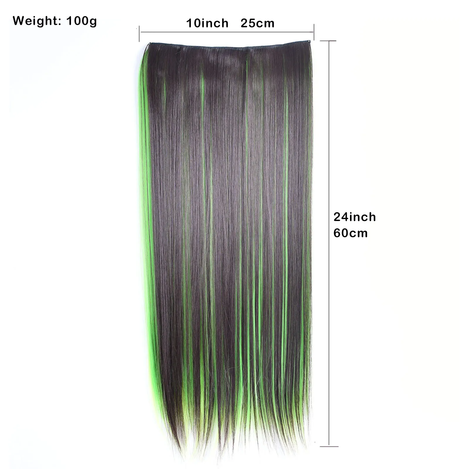 Jeedou Hair Extension Clip-in Straight Hairpiece 5-Clips One Piece Piano Highlighted Color Masquerade Party Synthetic Hair