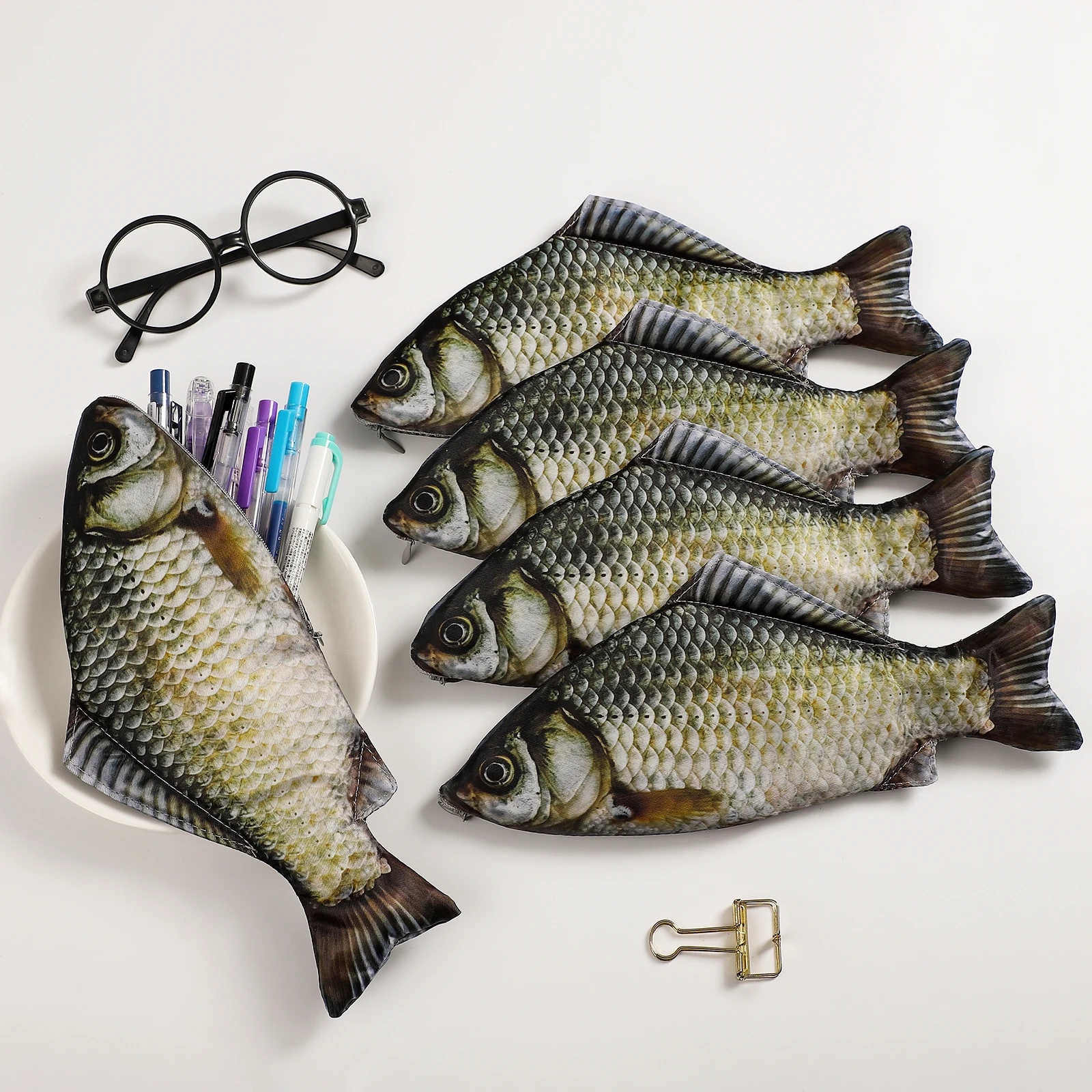 JIANWU Creative Simulated Salted Fish Pencil Case Large Capacity Pencils Pouch Bag Funny School Pencil Cases Stationery Supplies