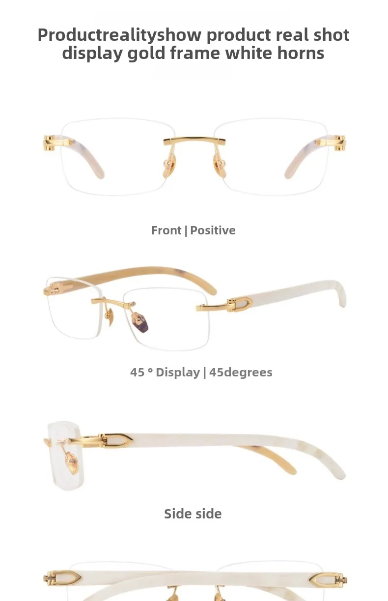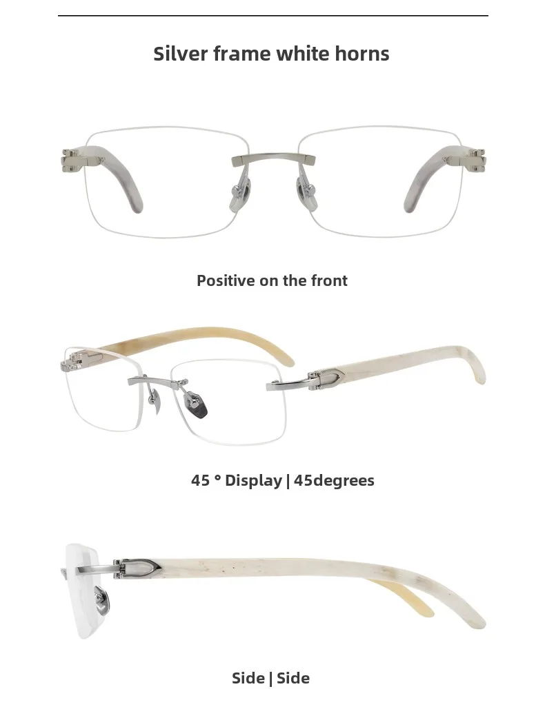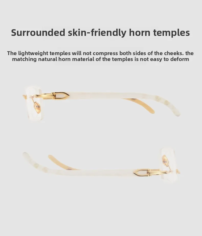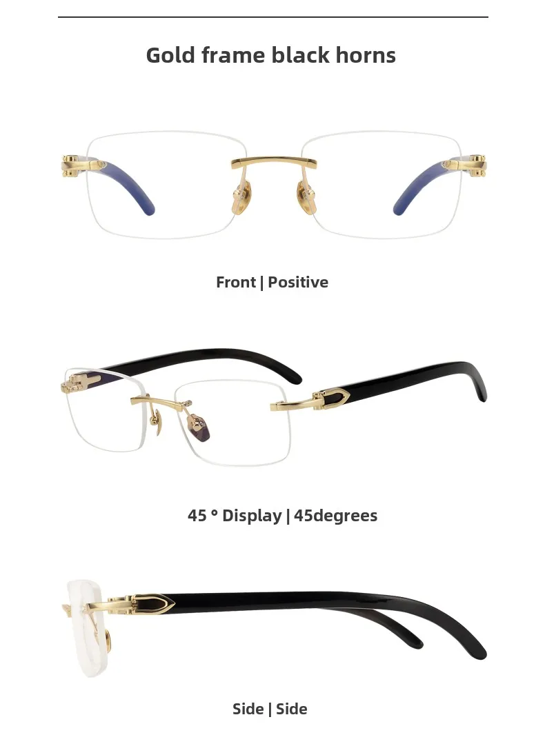 Keep Quiet! Natural Horn Catapults Make Men’s Business Big-frame Myopia Rimless Square Glasses Frame Myopia Reading Glasses.