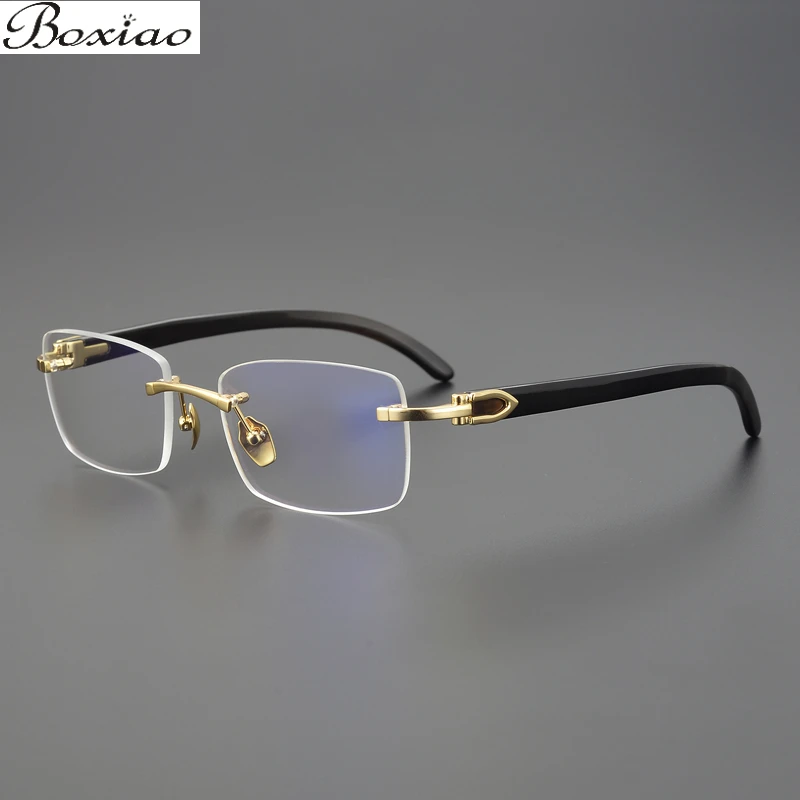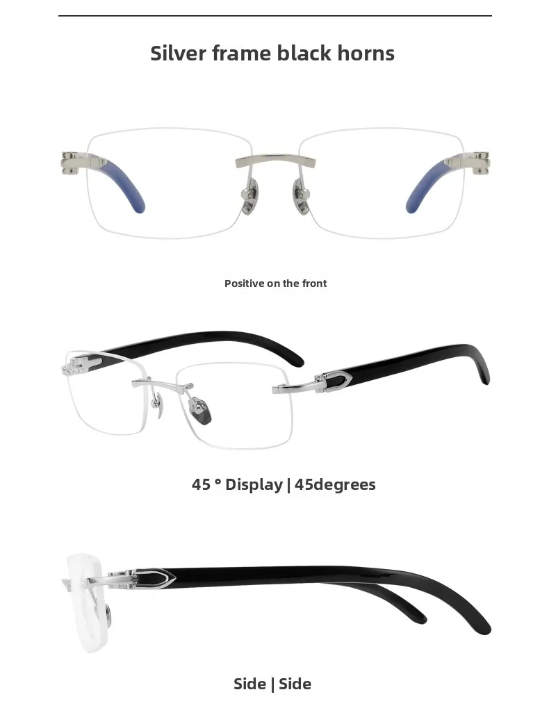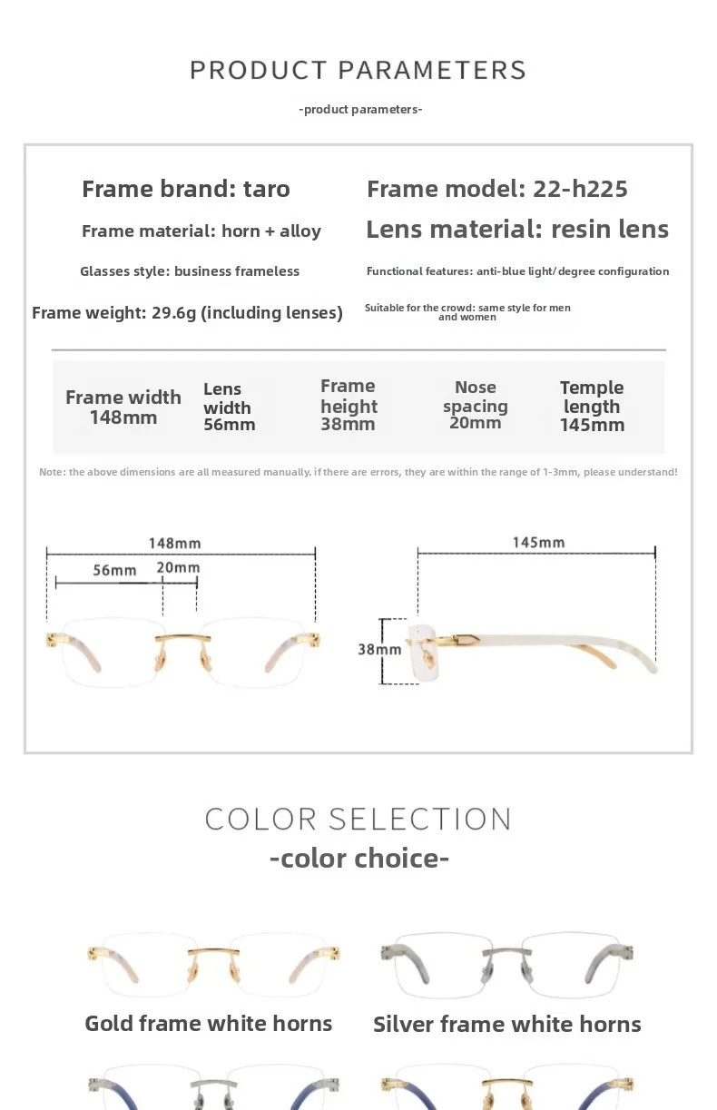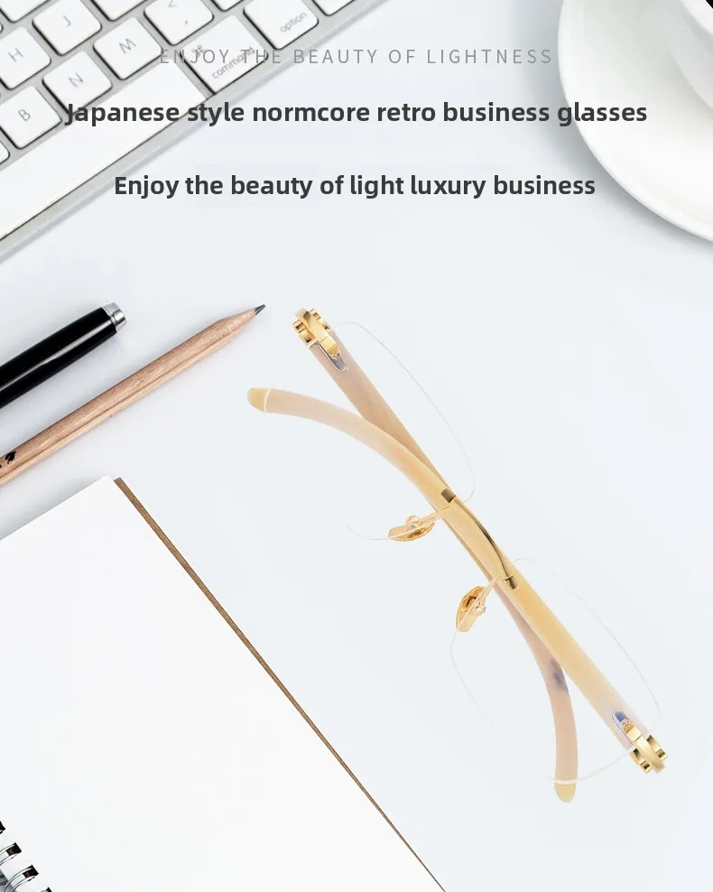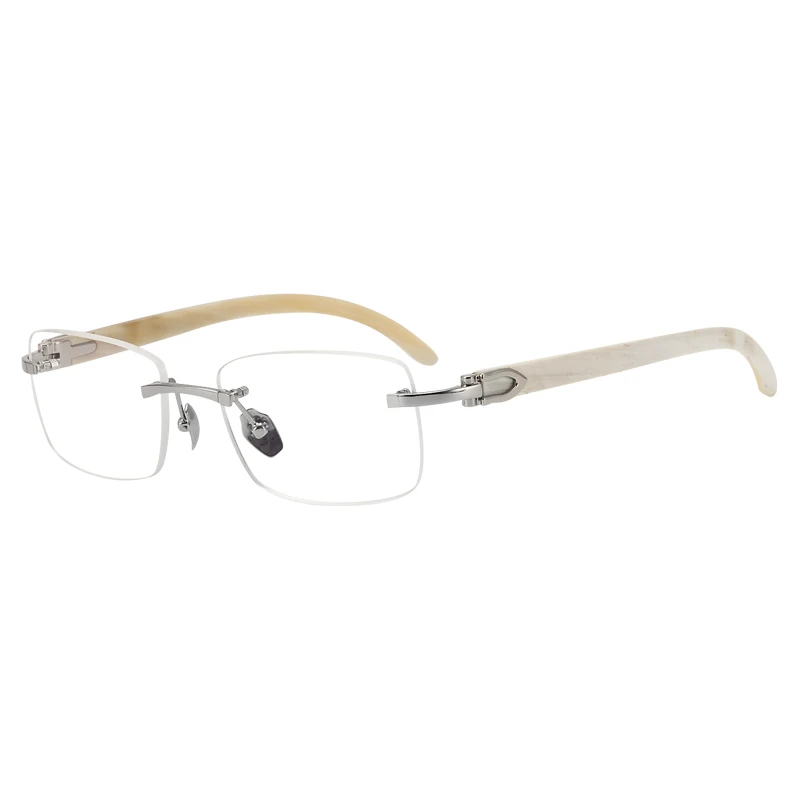 Keep Quiet! Natural Horn Catapults Make Men’s Business Big-frame Myopia Rimless Square Glasses Frame Myopia Reading Glasses.