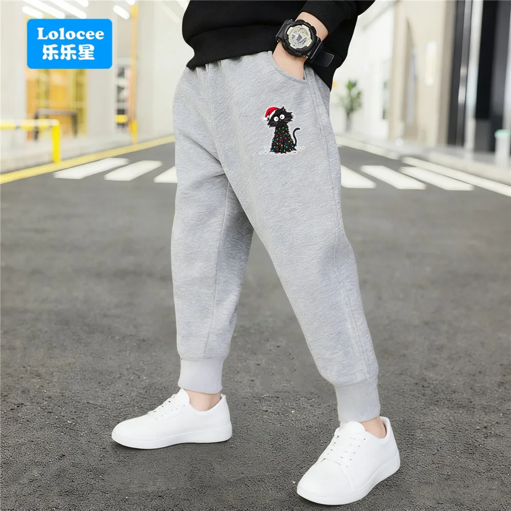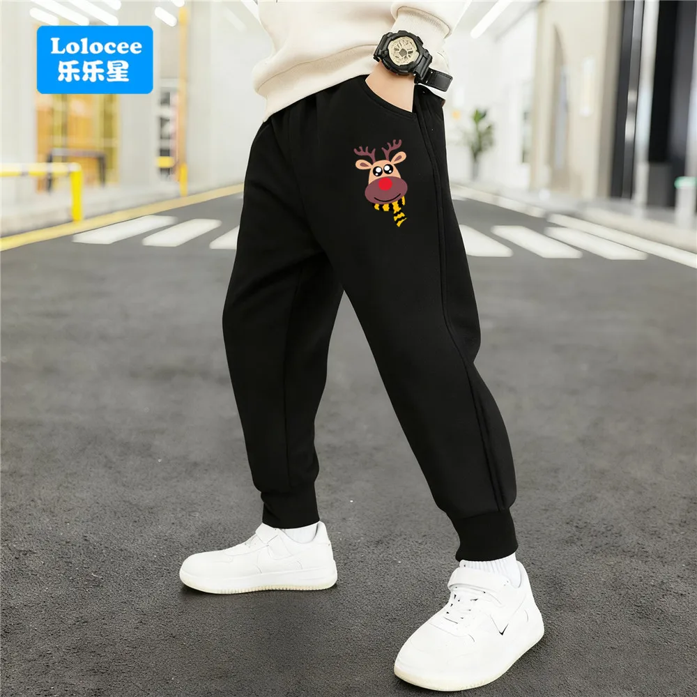 Kids Black/Gray Sweatpants, Cute Reindeer Print Elastic Waist Joggers for Boys Girls,Cotton Casual Christmas Pants 2026 New SDL1