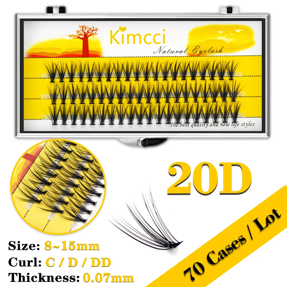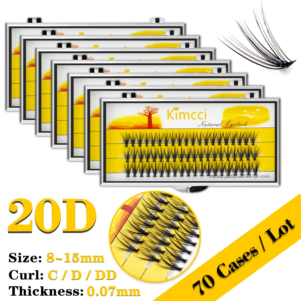 Kimcci 20D Wholesale 70 Cases / lot Mink Eyelashes Extension Natural 3D Volume Fake Lashes Individual Cluster Makeup Tools Cilia
