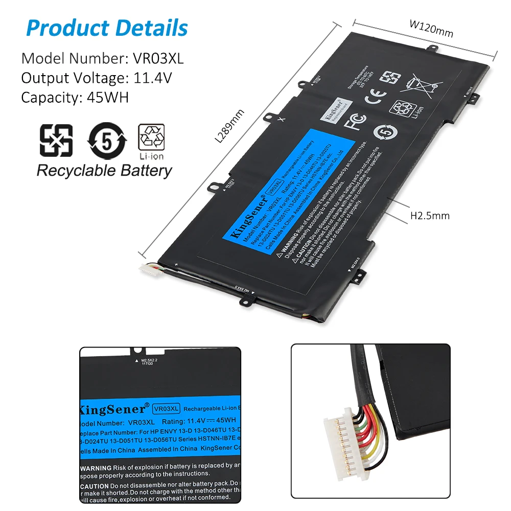 KingSener 11.4V 45WH VR03XL For HP Envy 13-D051TU D056TU D025TU 13-D046TU TPN-C120 HSTNN-IB7E 2 Year Warranty