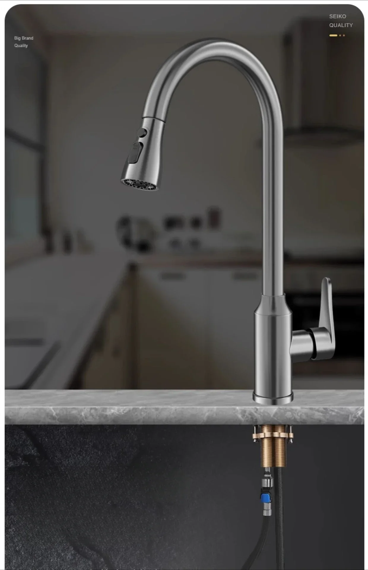 Kitchen Faucets Fine copper gun gray kitchen sink pull-out faucet household sink washbasin rotating hot and cold faucet