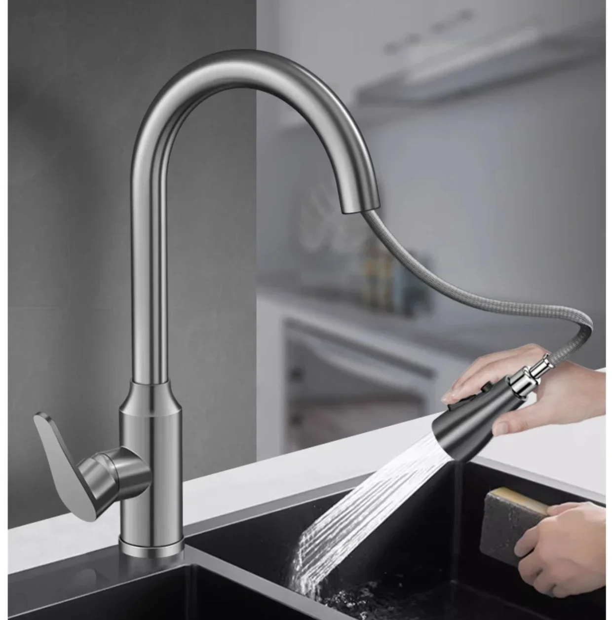 Featuring a pull-out design, this faucet provides flexibility and convenience for various washing tasks.