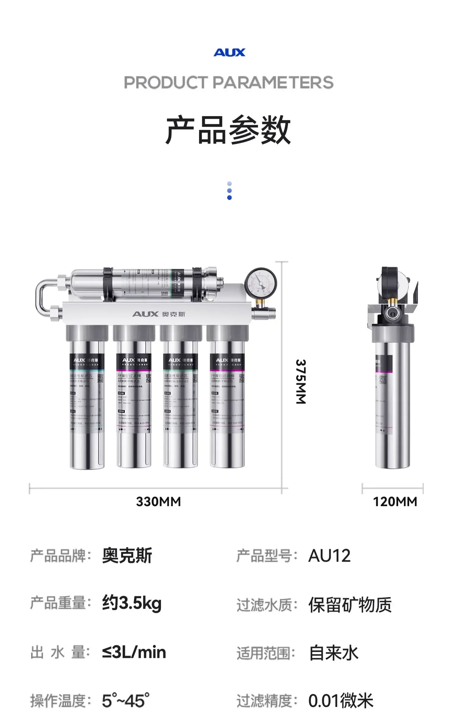 - Brand of water purifier: AUX/AUX