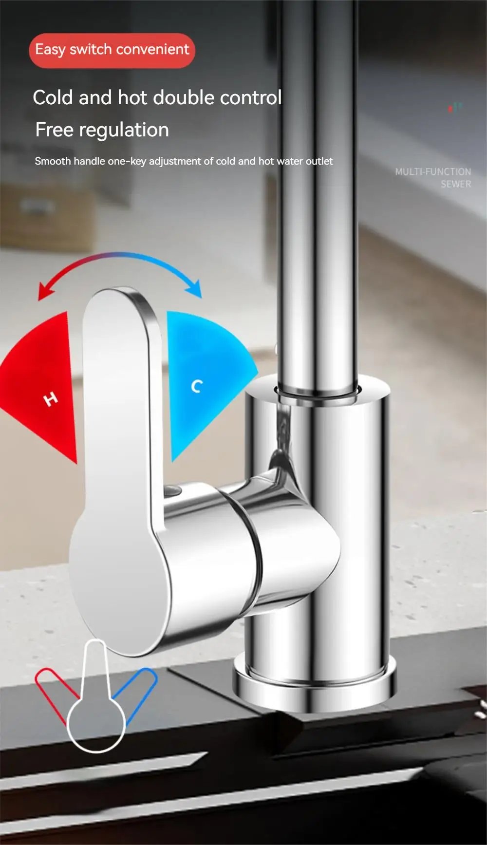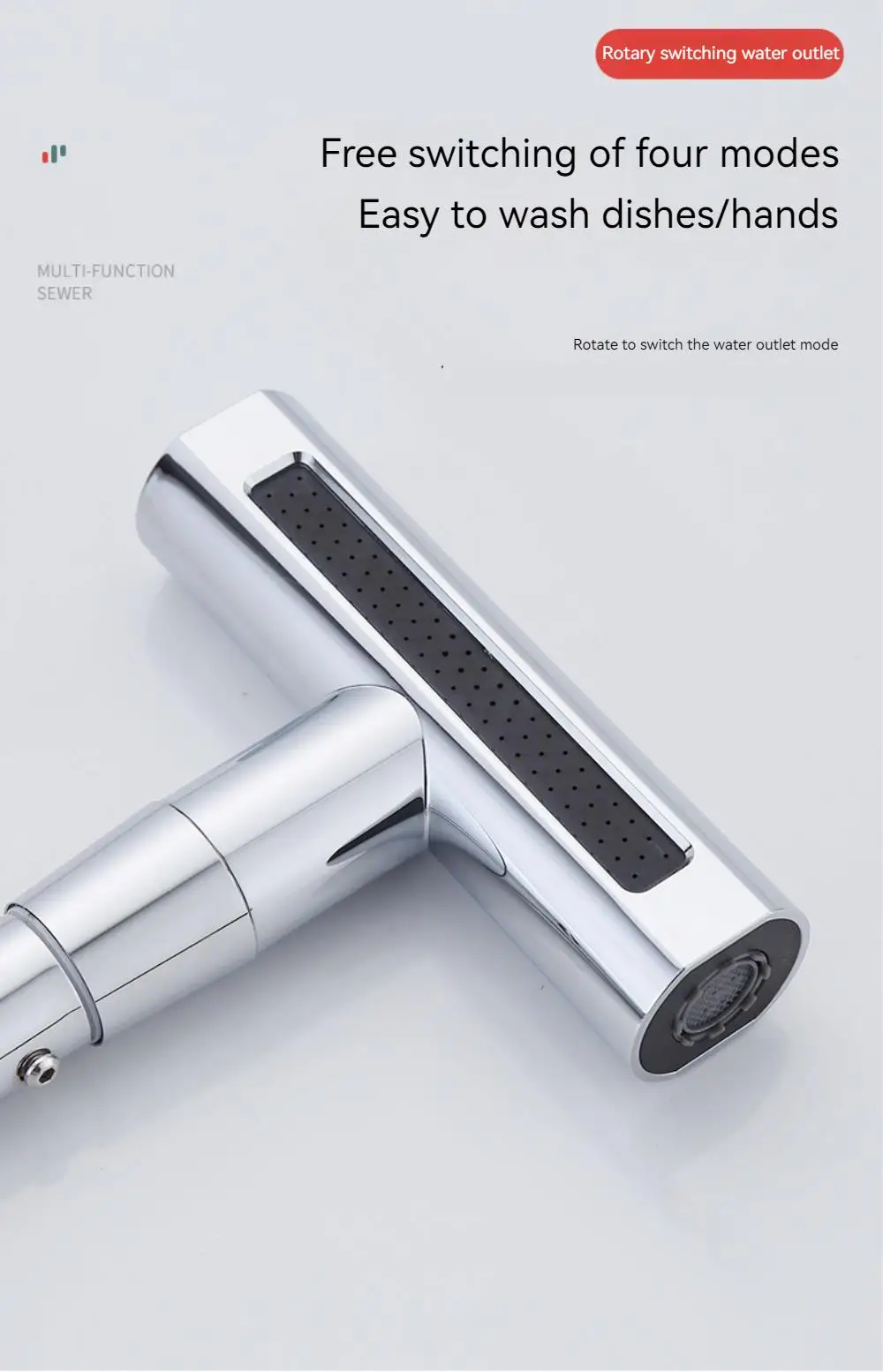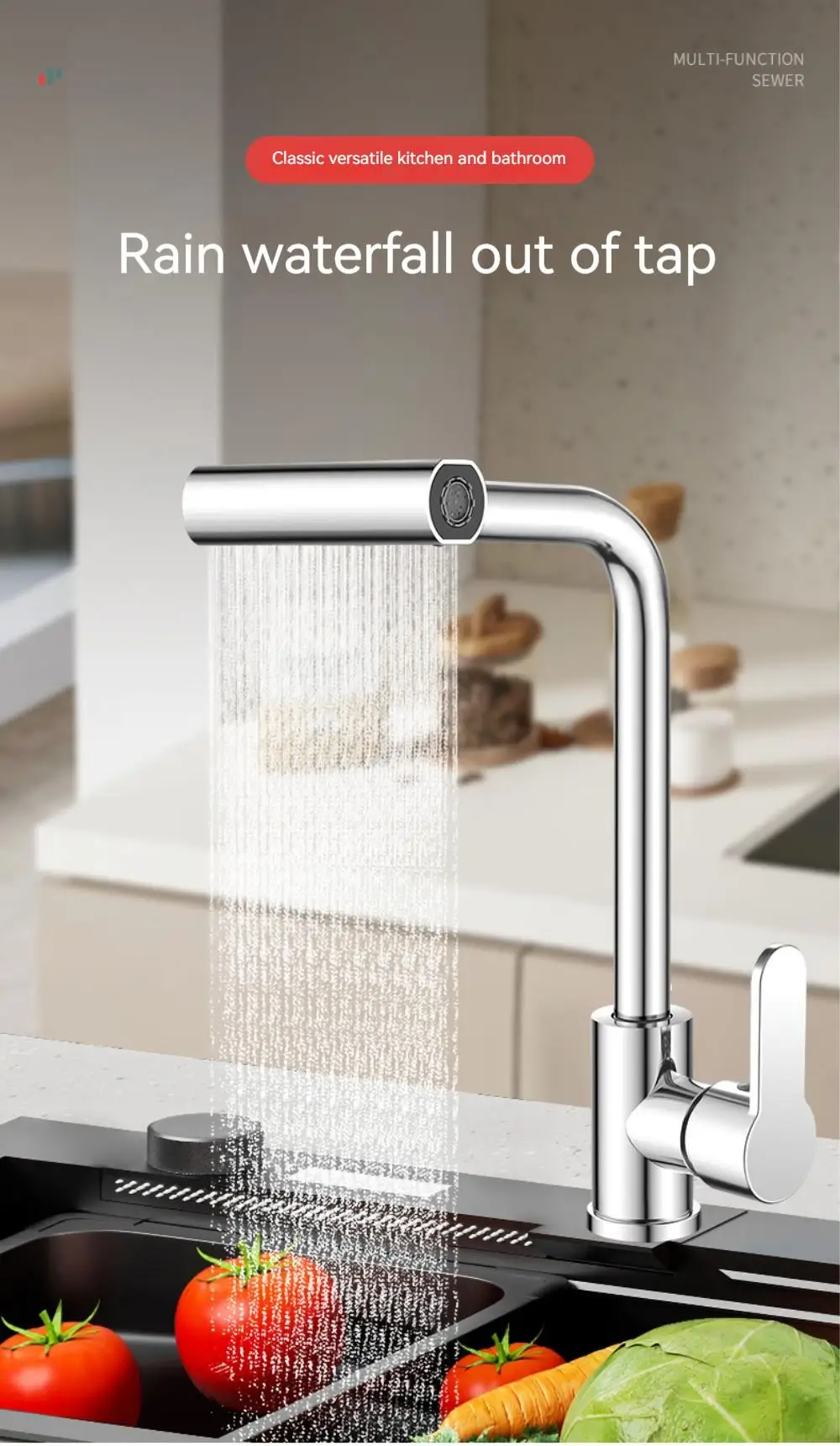 Kitchen Shower Waterfall Splash Head, Cold and Hot Dishwashing Basin, Dishwashing Basin Sink, Multi-functional Swivel Faucet