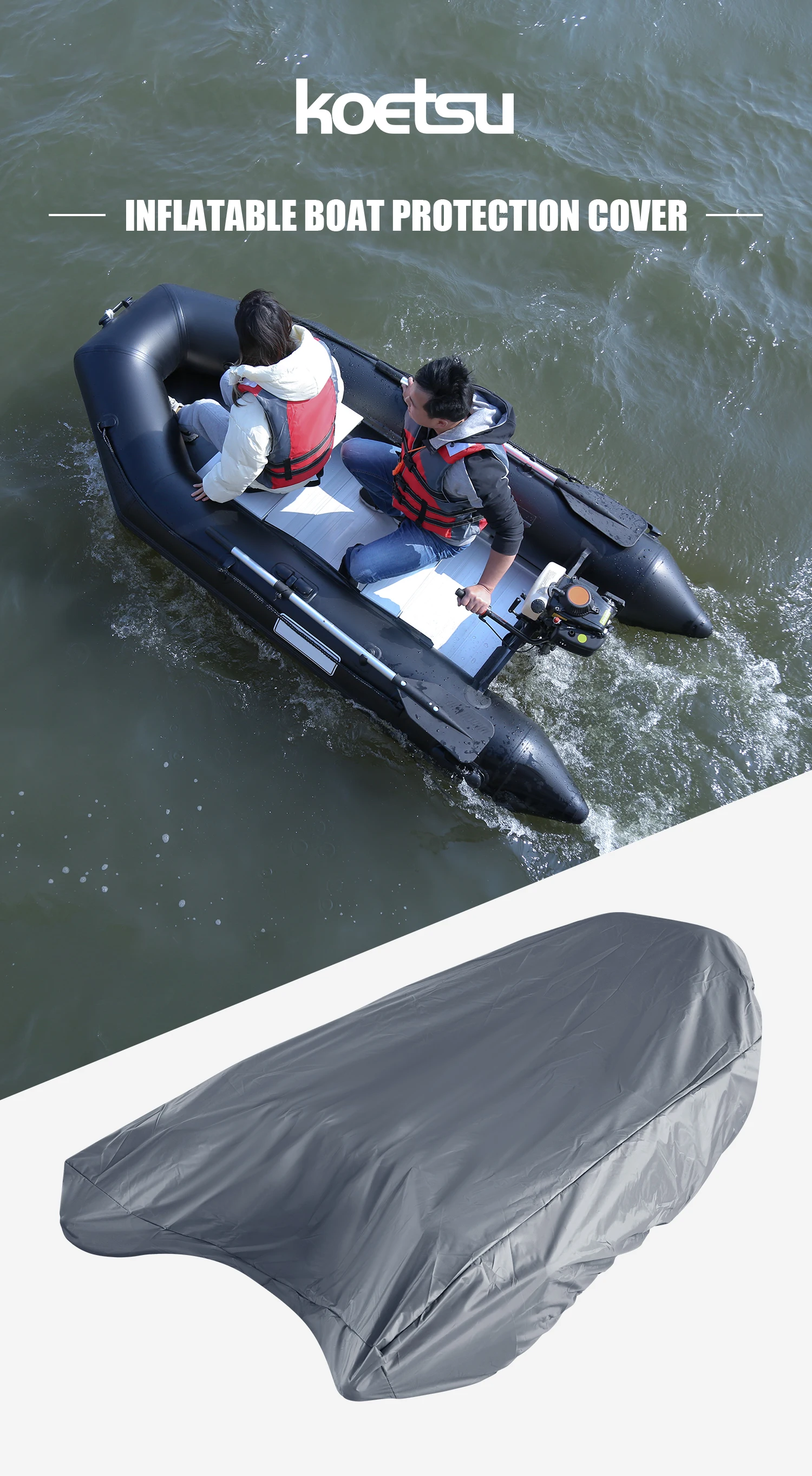 KOETSU 420D marine grade anti-fade and tear-resistant rubber boat cover sunshade inflatable boat cover silver boat cover