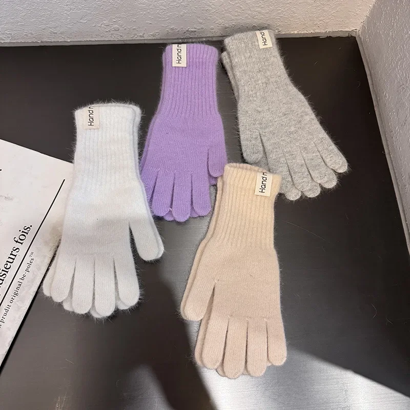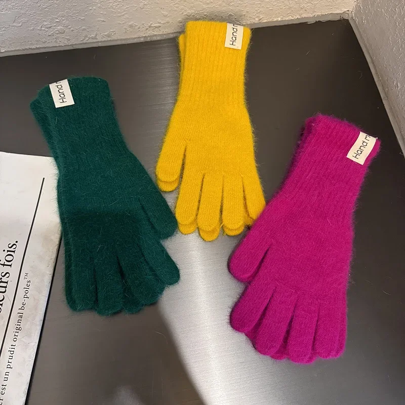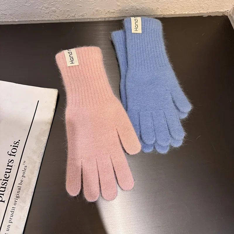 Korean Fashion Winter Warm Knitted Full Finger Long Gloves Wool Touchscreen Mittens Thick Warm Soft Cycling High Quality Glove
