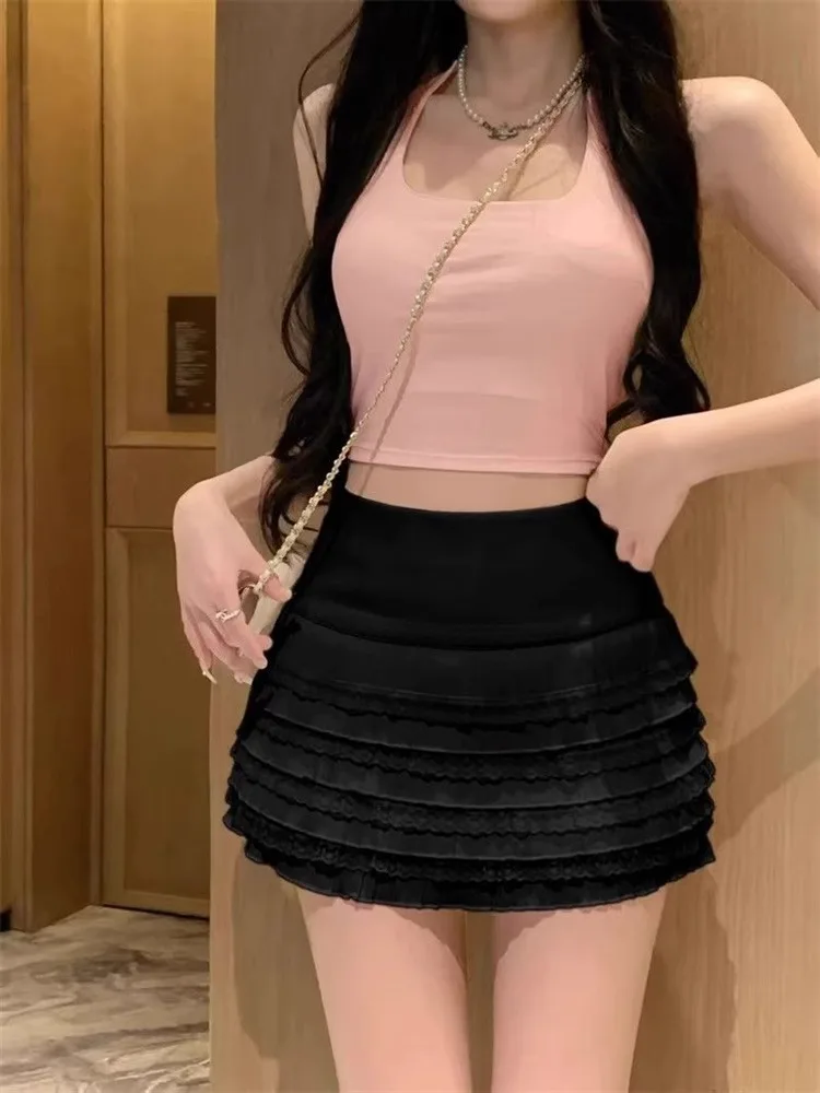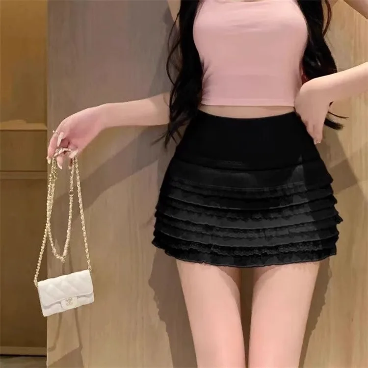 Korean Sle High Waist Pleated Lace ort Skirt Women’s Sweet Spicy Girl Cake f Body Skirts Autumn New Faion