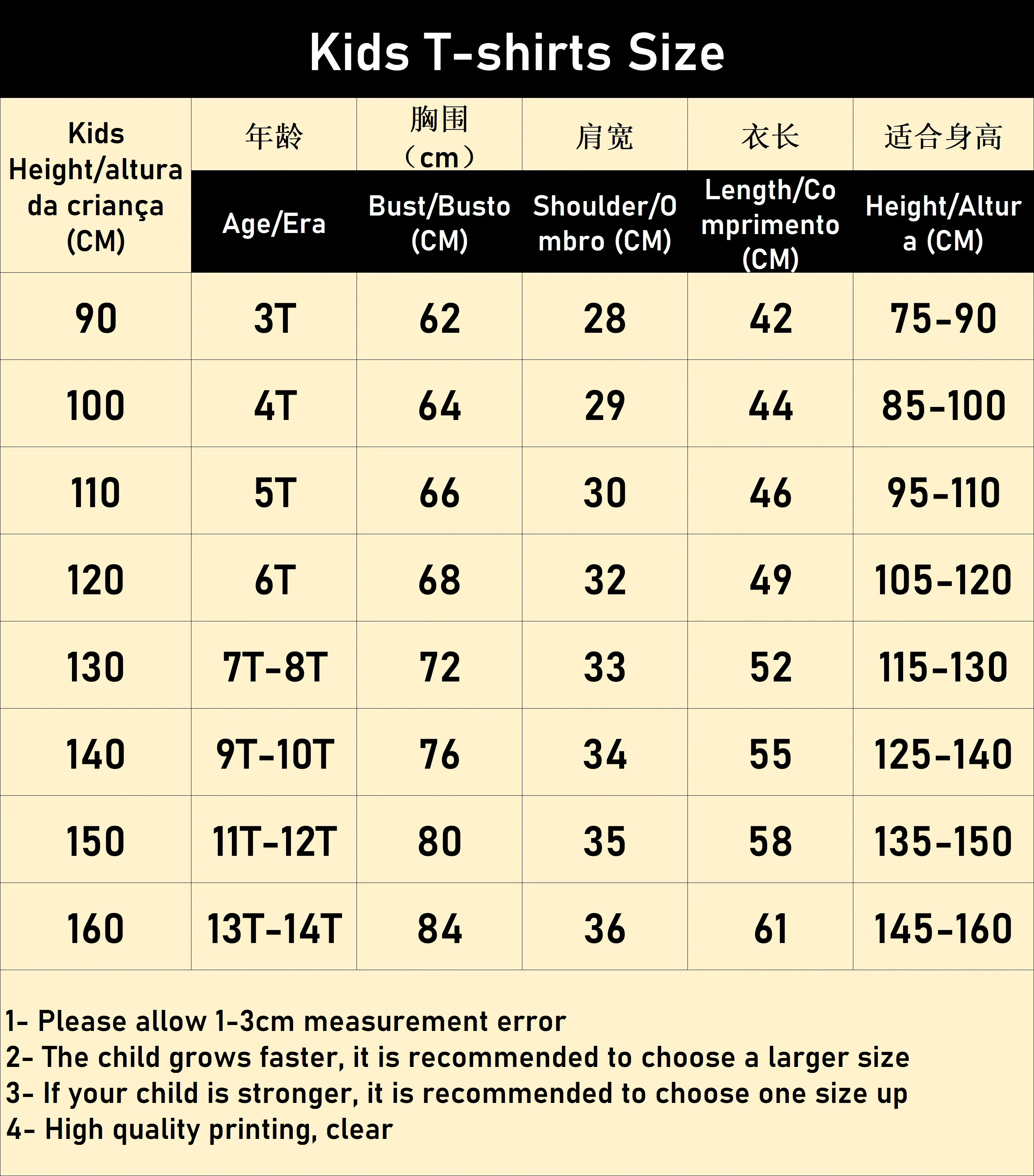 110—-4-5 years old–bust 66 cm, width 30 cm, shirt length 46 cm, height 95-110 cm