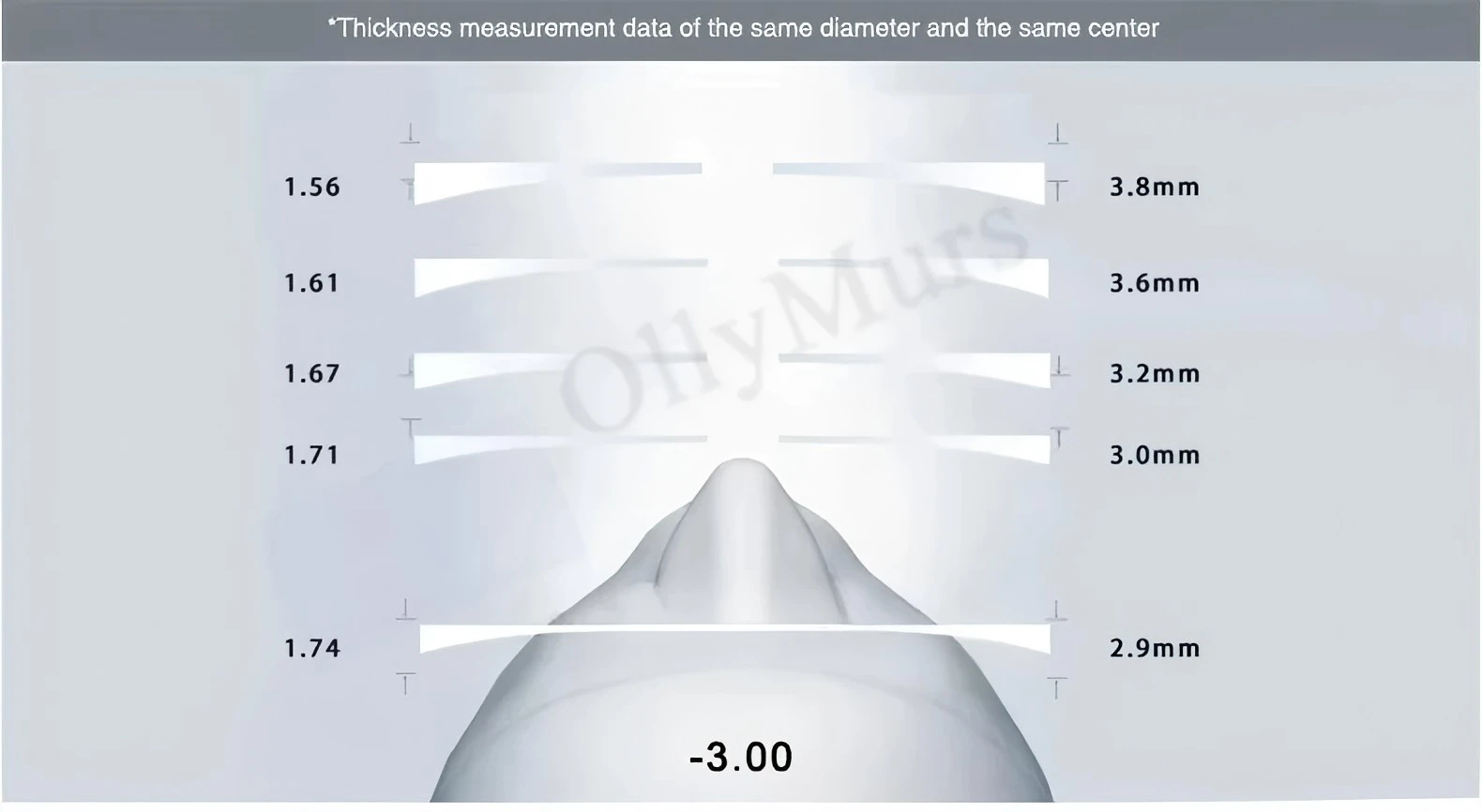 (The higher the refractive index of the lens, the thinner the lens, and the more comfortable it is to wear)