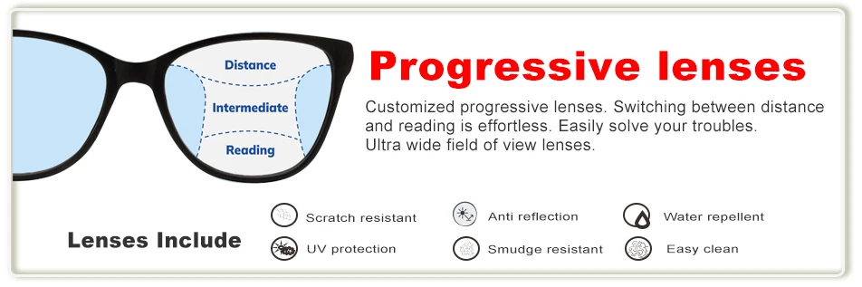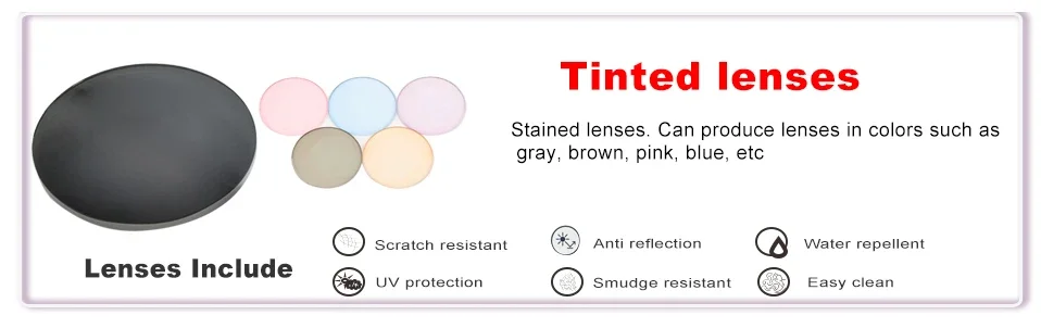 We offer Anti-Blue Light ,Photochromic Lens ,Anti-Fog + Anti-Blue Light,Anti-Blue Light & Photochromic,Anti-Glare + Anti-Blue Light ,Anti-Glare + Anti-Blue + Photochromic,MR-8/MR-7,Ultra-Thin For Rimless,Super Ultra Thin hyperopia lens,Polarized Sunglasses,Colored Mirror Polarized Sunglasses,Tinted Prescription Sunglasses and all customized lens etc.