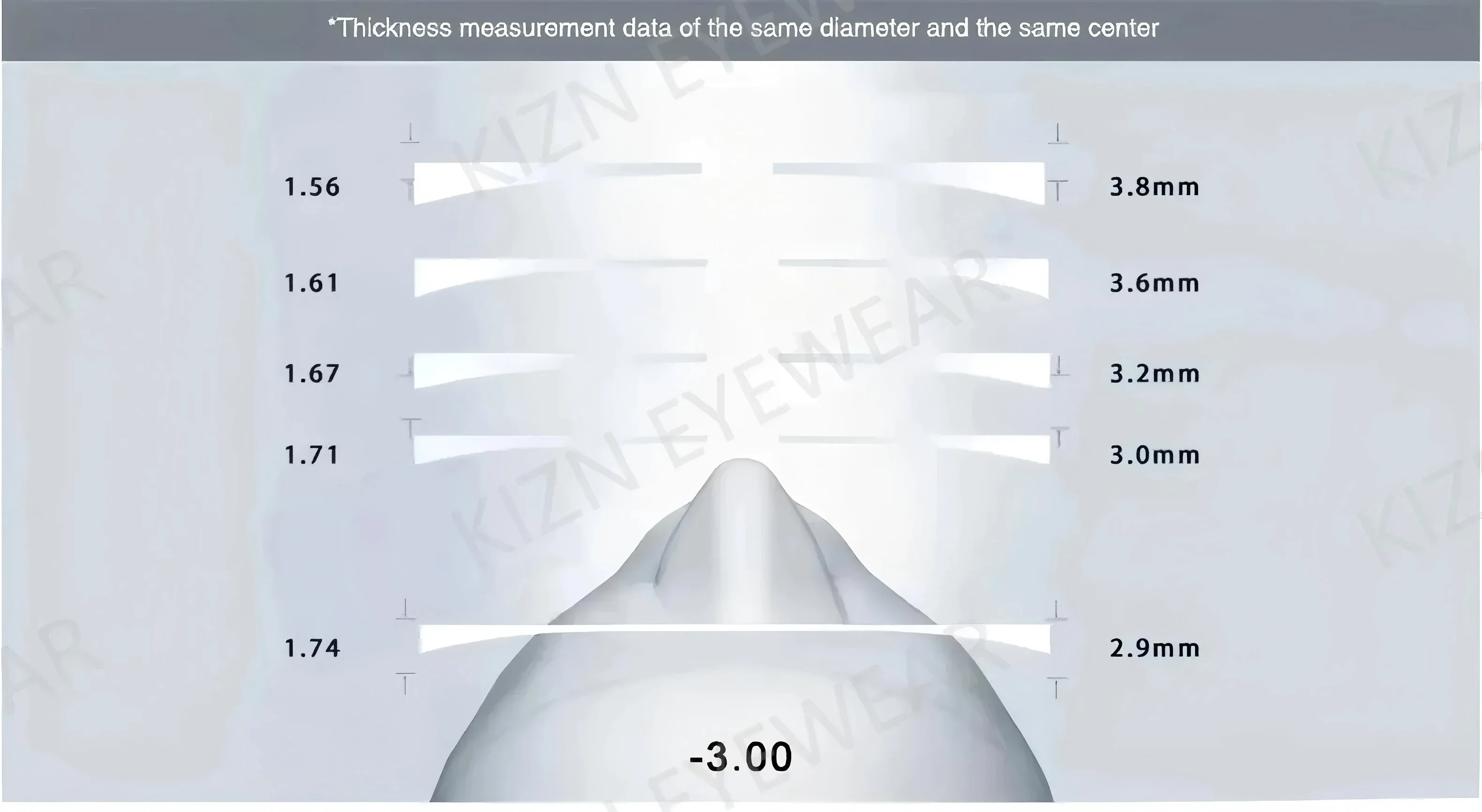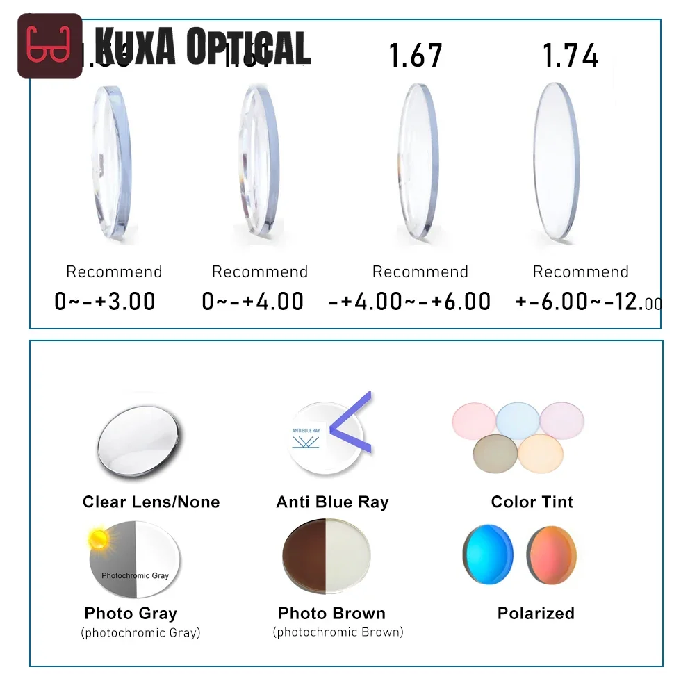 (The higher the refractive index of the lens, the thinner the lens, and the more comfortable it is to wear)