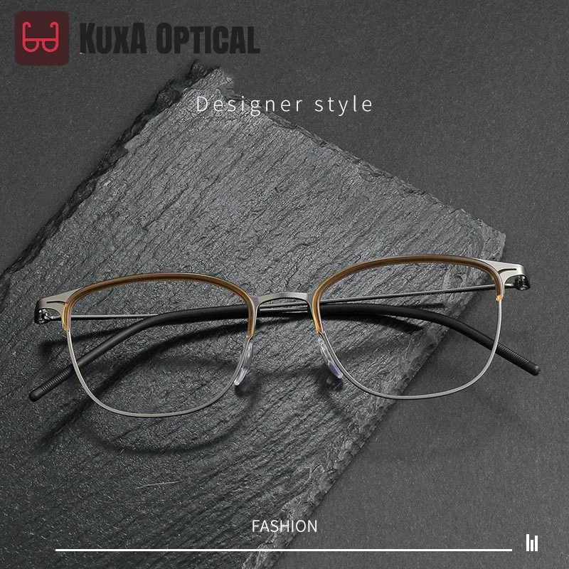 KUXA Pure Titanium 7g ultra light Glasses With Prescription Lenses Myopia Reading Progressive Eyewear Anti-Reflection UV400