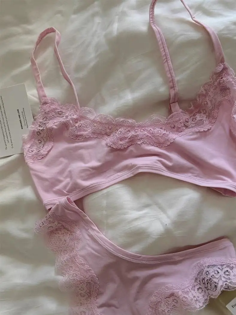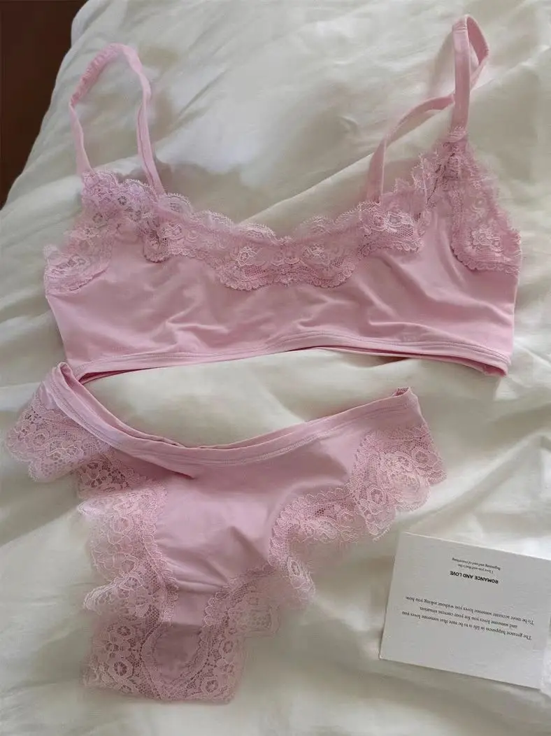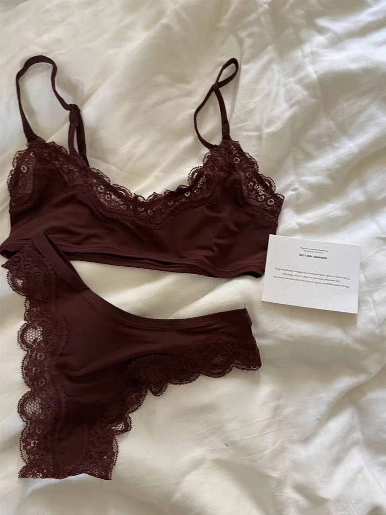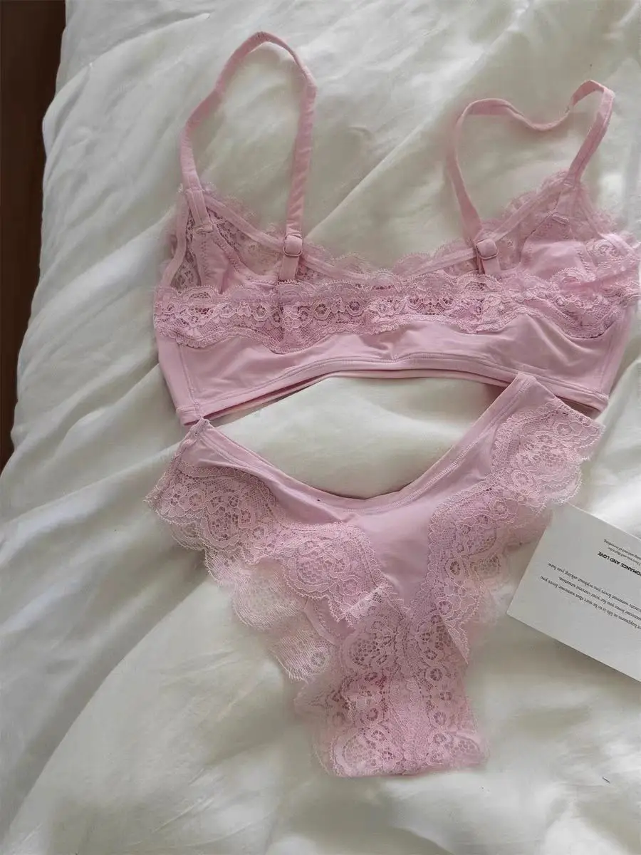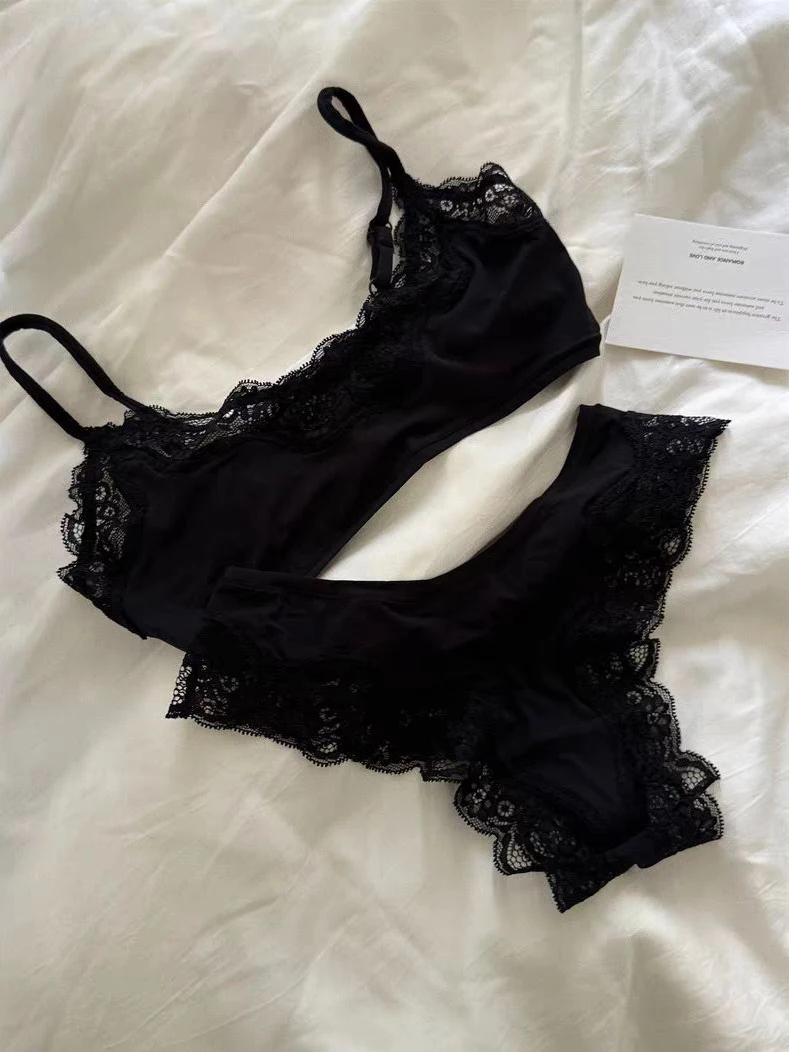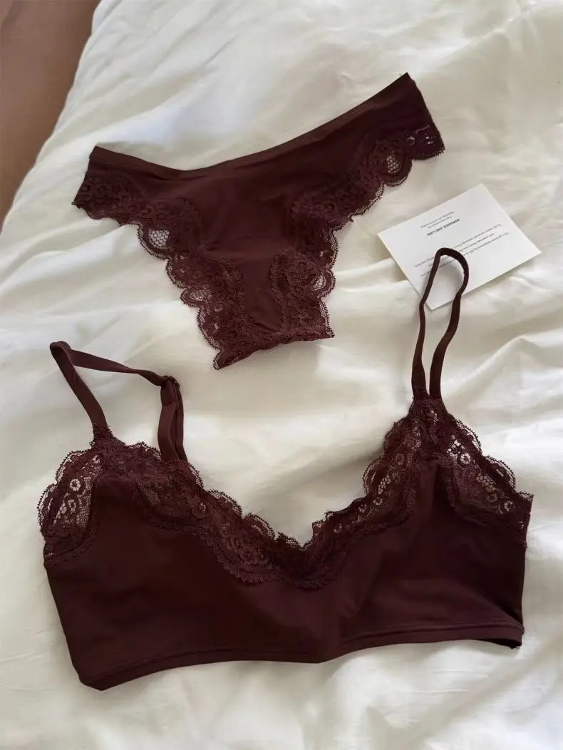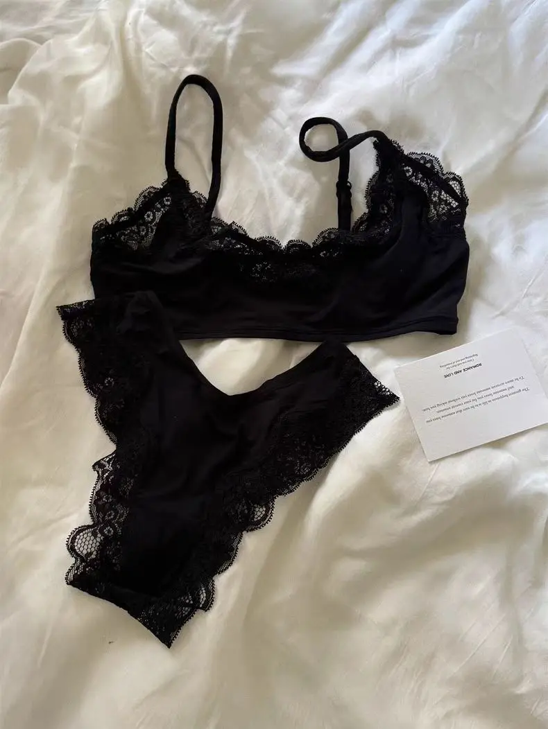 Lace Bra Set Woman Adjusted-strap Seamless Bras+Low Waist Panties Female Casual Simple Solid High Elasticity Lingerie Sets