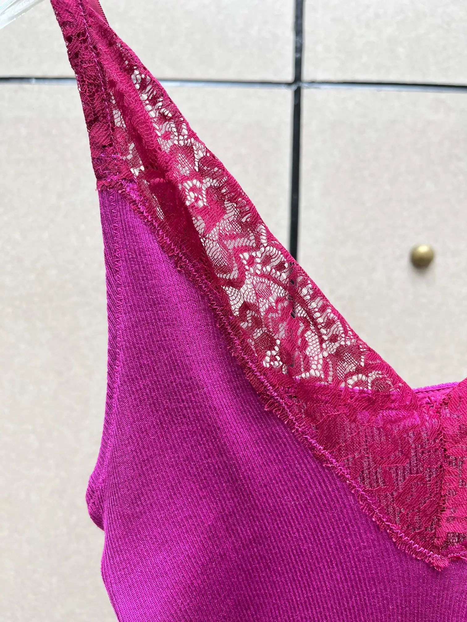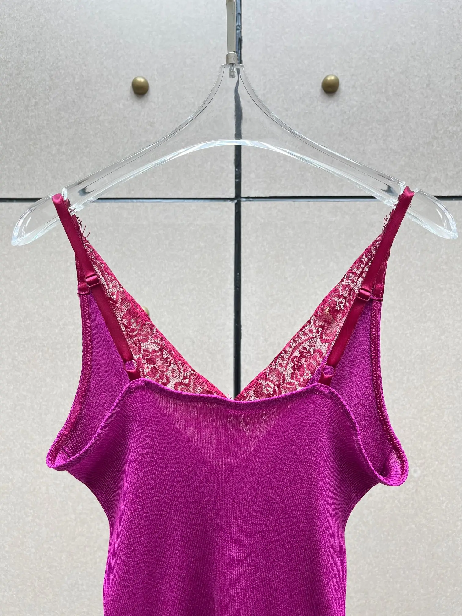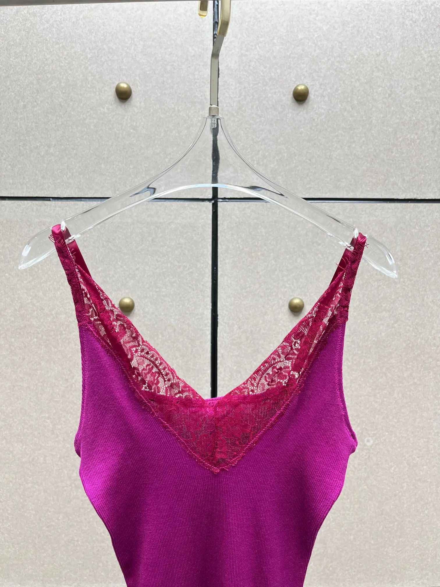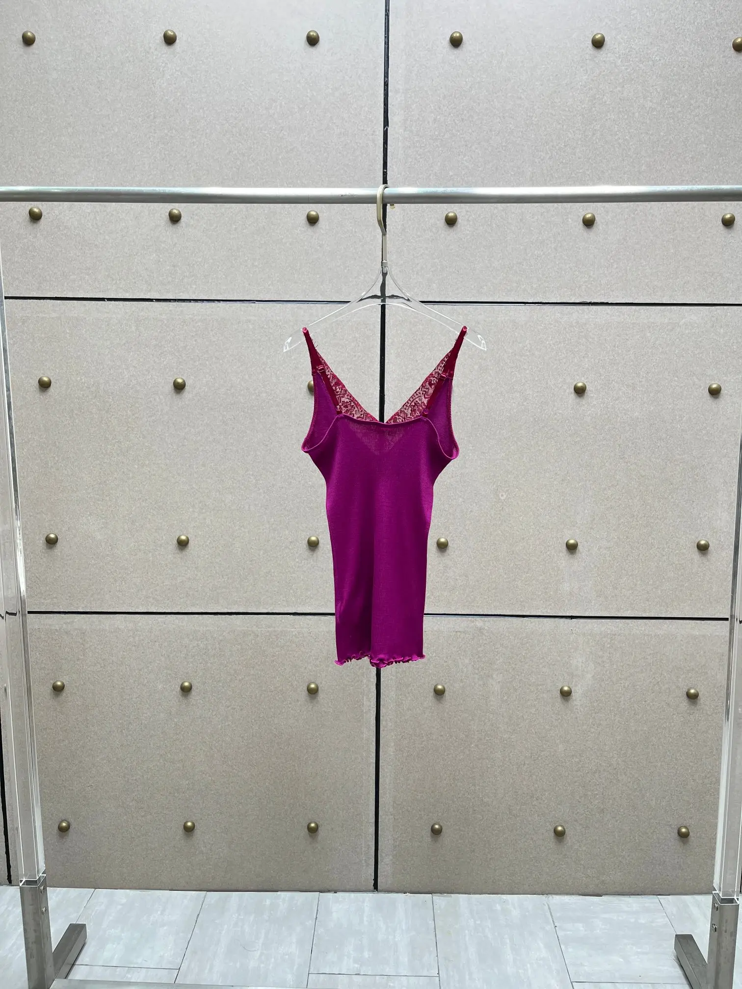 Lace lace silk tank top temperament fashion elastic Slim versatile women’s knitted top 2025 summer new